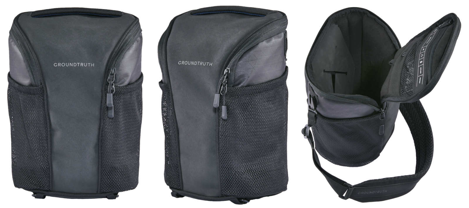 Die Kameratasche ist innen stark gepolstert und verfügt über zwei Netz-Aussentaschen sowie ein Netzfach für Speicherkarten. Zwei Netzaussentaschen bieten Platz für eine Wasserflasche oder einen Regenschirm, und zwei Zurrpunkte mit verstellbaren Riemen ermöglichen die Befestigung eines Stativs an der Unterseite der Tasche. Jede Groundtruth Kameratasche verwertet 25 Plastikflaschen.