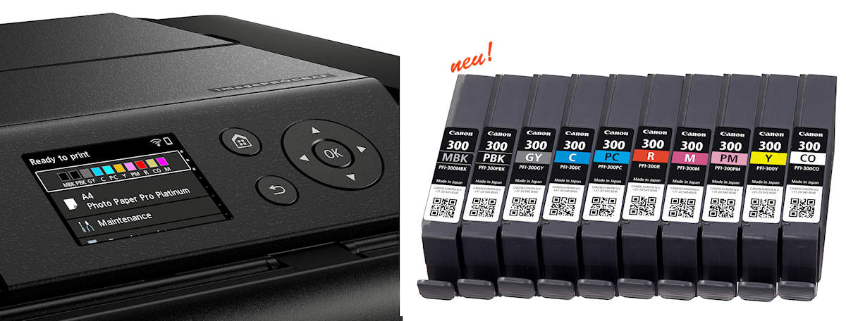 Gegenüber dem Vorgänger Pixma PRO-10S bietet das neue Modell den Vorteil, dass ein randloser Druck in allen Druckmodi möglich ist, sogar auf Fine-Art-Papier. Der imagePROGRAF PRO-300 bietet Unterstützung für Papier von Canon und Drittanbietern – darunter Hahnemühle, Canson, Tecco, Moab, Awagami und von vielen weiteren Anbietern.