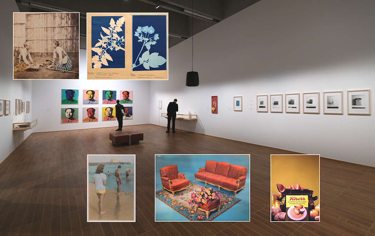 Die riesige Sammlung einerseits und das Konzentrat davon in der Ausstellung deckt alle wichtigen Bereiche der Fotografie ab, sowohl was die Entwicklung der fotografischen Verfahren anbelangt als auch die enorme Motivvielfalt, die in dieser Ausstellung zum Ausdruck kommt. Das beginnt mit Daguerreotypien, die ersten unikaten Fotografien nach dem Erfinder Louis Jacques Mandé Daguerre, dann zu den eher erschwinglichen Ambrotypien und Ferrotypien und zu den ersten Fotos auf Salz- und Albuminpapier. Auch die ersten zaghaften Versuche mit Farbverfahren sind dokumentiert, bis dann Autochrome-Platten und später die chromogenen Farbfilme sowie die Silbergelatineprints die Fotografie populär machten.