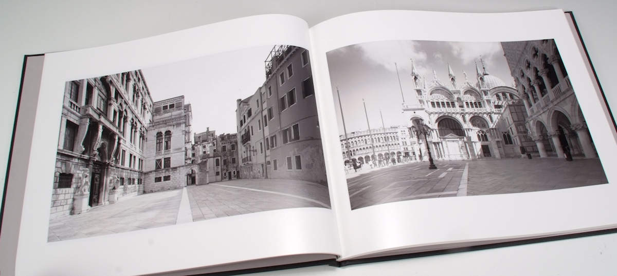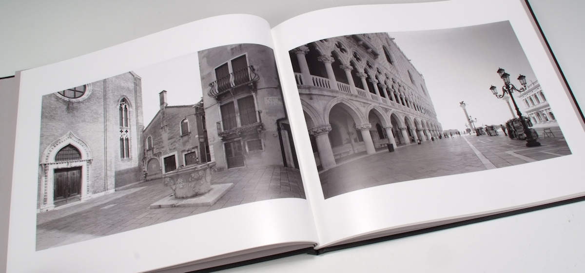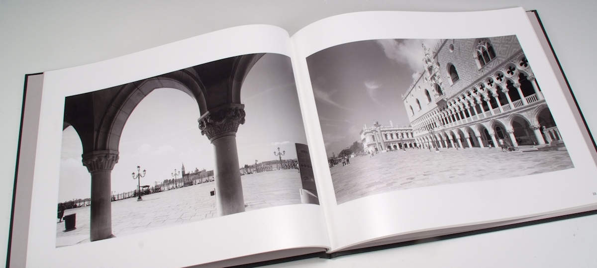 Marc Deragisch fotografiert seit gut zehn Jahren ausschliesslich analog, meistens mit zwei Chamonix-Grossformatkameras und einer Plaubel 69W Proshift. Das erklärt auch, weshalb sämtliche Bilder im Buch perfekt geradegestellt sind und keine stürzenden Linien aufweisen – so wie man Architekturen und Städtebilder nach allen Regeln der Kunst fotografiert. Es ist eine makellose Dokumentation über die Plätze und Gebäude von Venedig, die völlig zeitlos wirkt – als wäre sie vor vielen Jahrzehnten entstanden als es in Venedig noch weniger Touristen gab.