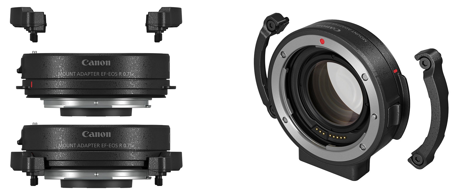 Der Canon Bajonettadapter «EF-EOS R 0.71x» ist ein EF-zu-RF-Adapter, der es ermöglicht, mit dem umfangreiche Angebot von vollformatigen EF-Objektiven auch auf dem Super-35mm-Sensor den gleichen Blickwinkel abzubilden wie auf einem Vollformatsensor. (Diese Prinzip der Bildwinkelreduktion samt einem «boost» der Lichtstärke ist vor allem von den «Metabones Speed Booster»-Adaptern für Kameras mit APS-C- und MFT-Sensoren sowie ähnlichen Produkten her bekannt.)