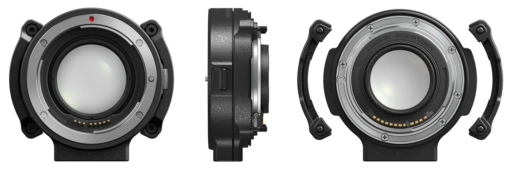 Der Canon Bajonettadapter «EF-EOS R 0.71x» ist ein EF-zu-RF-Adapter, der es ermöglicht, mit dem umfangreiche Angebot von vollformatigen EF-Objektiven auch auf dem Super-35mm-Sensor den gleichen Blickwinkel abzubilden wie auf einem Vollformatsensor. (Diese Prinzip der Bildwinkelreduktion samt einem «boost» der Lichtstärke ist vor allem von den «Metabones Speed Booster»-Adaptern für Kameras mit APS-C- und MFT-Sensoren sowie ähnlichen Produkten her bekannt.)