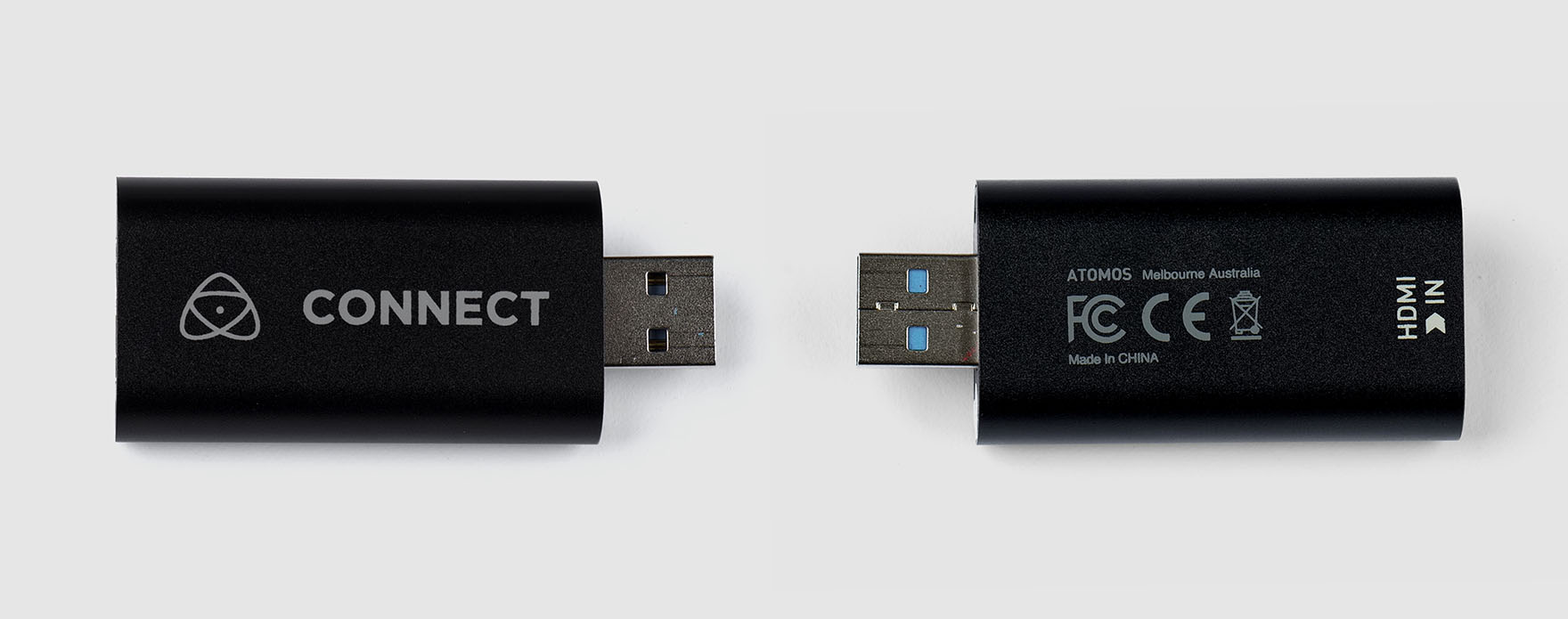 Mit einem schlanken 0,5-Zoll-Profil ist der Connect klein genug, um direkt von einem Notebook oder Computer zu sitzen. Es sind keine Treiber erforderlich und auch kein Netzteil. Das bedeutet, dass man ein HDMI-Gerät (Kamera oder einen Atomos Recorder) ganz einfach an einem Mac oder PC anschliessn kann.