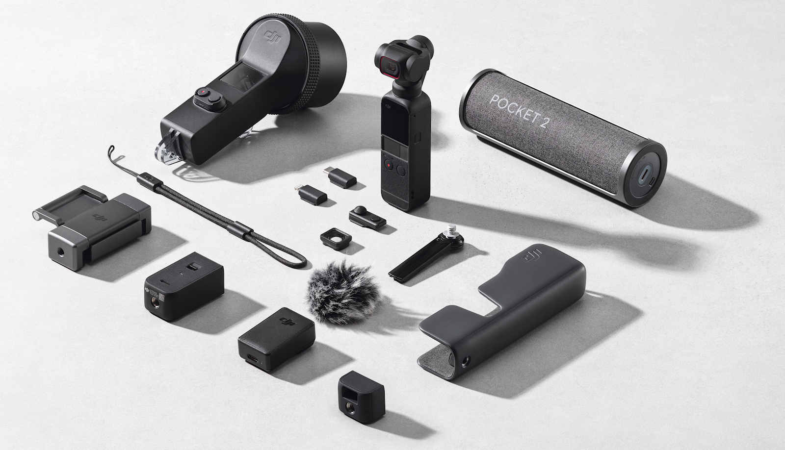 Zur Pocket 2 wurden eine Vielzahl von Zubehörteilen entwickelt, z. B. eine Ladeschale, ein Funkmikrofon-Set, ein wasserdichtes Gehäuse, ein kleines Einstellrad, eine Verlängerungsstange, ein Weitwinkelvorsatz für das Objektiv und ein Wi-Fi/Bluetooth-Modul und ein vielfältiges System für den Smartphone-Support. Dank dem modularen Aufbau der Pocket 2 kann man den unteren Teil des Griffs entfernen und verschiedene Zubehörteile anbringen, welche die Verwendungsmöglichkeiten von DJI Pocket 2 erweitern, einschliesslich einer Mikro-Stativhalterung und einem Allzweckgriff mit Stativhalterung, Wi-Fi/Bluetooth-Modul, Lautsprecher, 3,5-mm-Audiobuchse und Funkmikrofon-Empfänger.