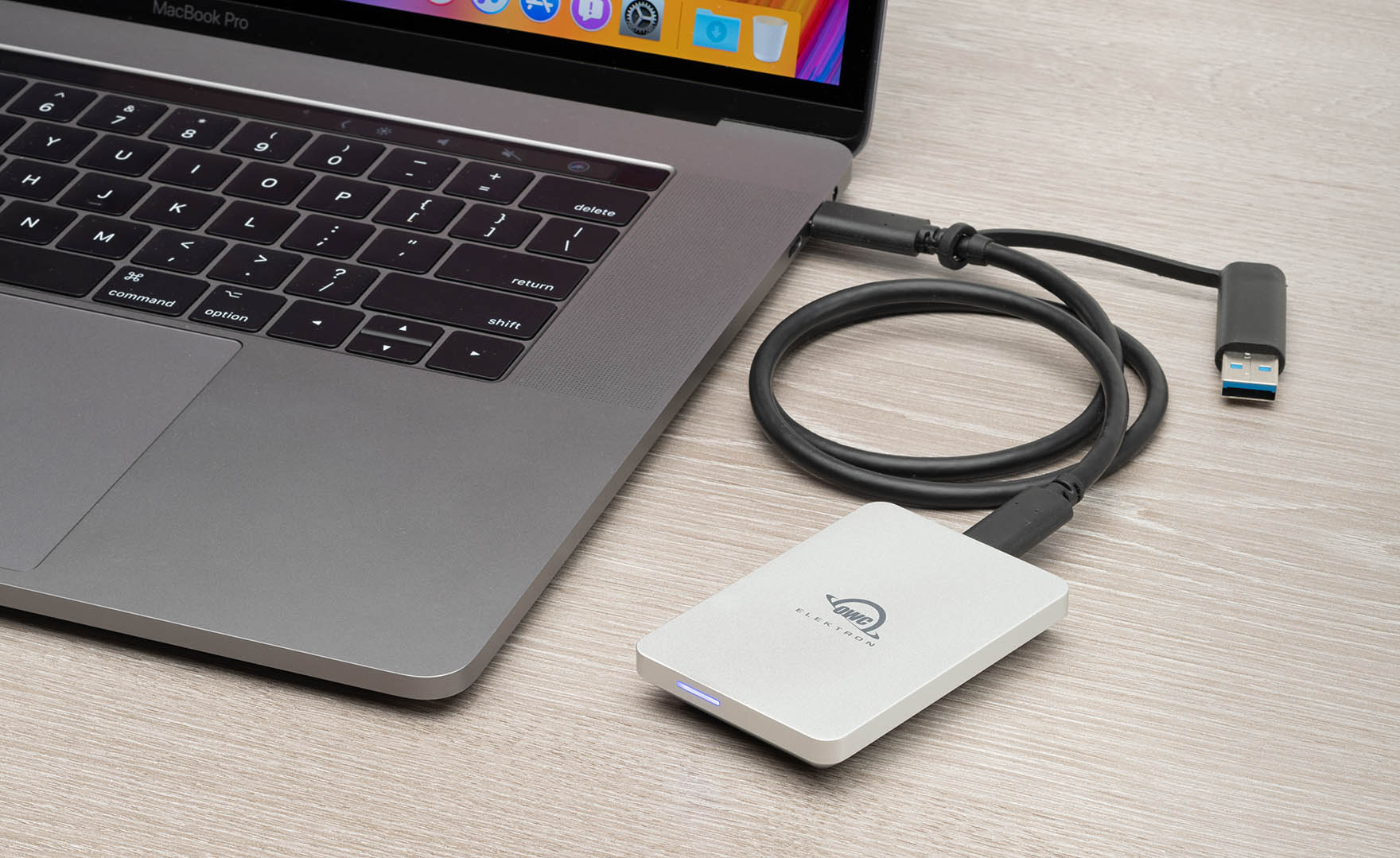 Die schlanke Speicherlösung in einem Gehäuse aus kühlendem Aluminium in Flugzeugqualität besitzt vorne eine LED für den Laufwerksstatus und arbeitet geräuschlos sowie ohne Netzteil. Mit dem mitgelieferten USB-C-Kabel samt dem Typ-A-Adapter ist der OWC Envoy Pro Elektron Plug-and-Play-kompatibel mit Macs und PCs, die im letzten Jahrzehnt hergestellt wurden sowie aktuellen und künftigen Modellen, sowie dem iPad Pro und Chromebook-Tablets.