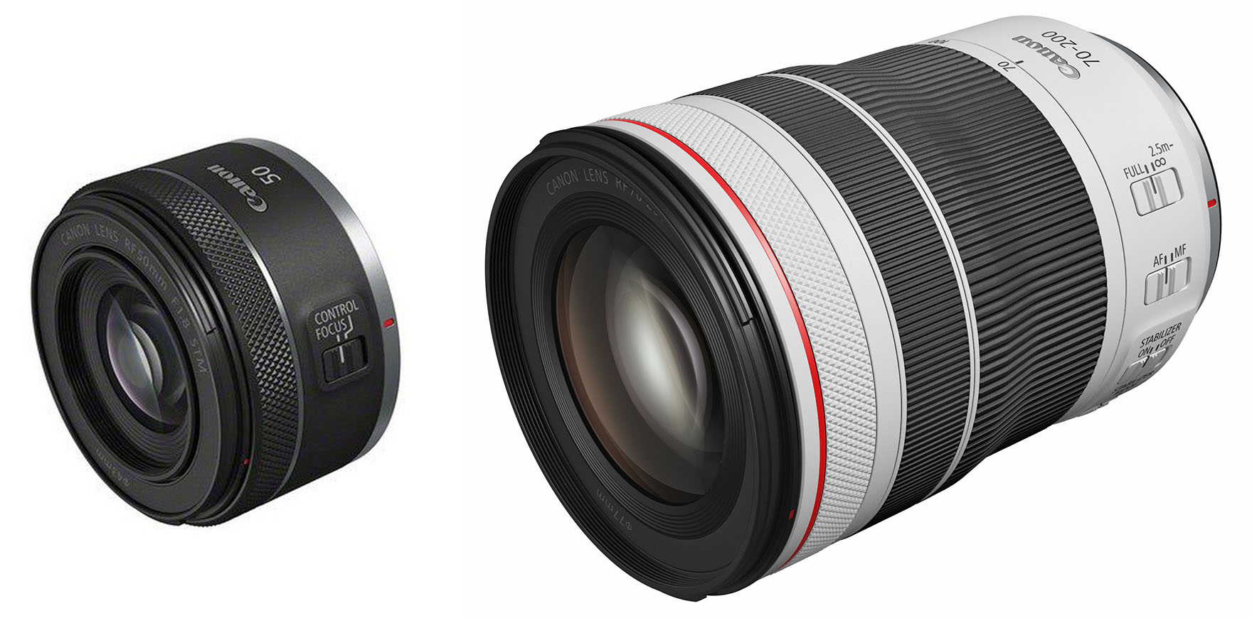 Zwei beliebte Canon-Objektive jetzt auch als RF-Modelle: Das neue RF 1,8/50mm STM (links) und das RF 4/70-200mm L IS USM