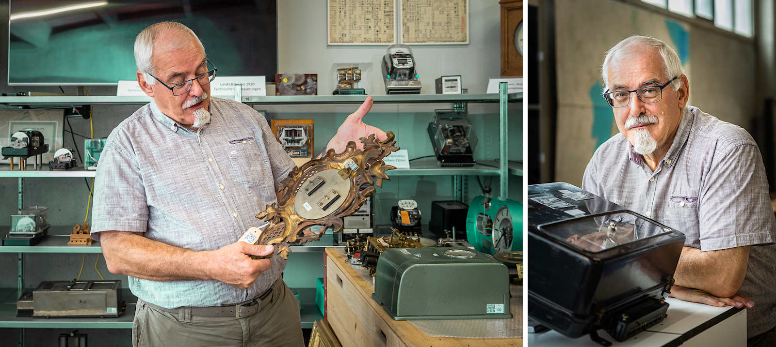 Subtile Ausleuchtung im Bouncing-Modus. Dem Bild sieht man kaum an, dass ein Blitz im Einsatz stand. (aus der Reportage «Sonderausstellung Uhren- und Zeitmessungen», Zuger Depot für Technikgeschichte)