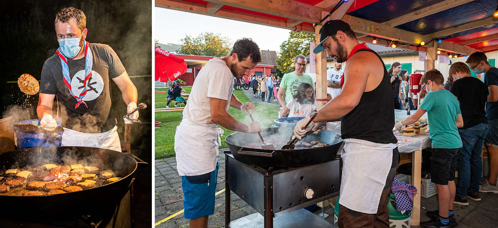 Der legendäre «Pfadi-Hamburger» aus der Reportage «Pfadi Morgarten-Ägerital», reaktionsschnell und perfekt aufgeblitzt