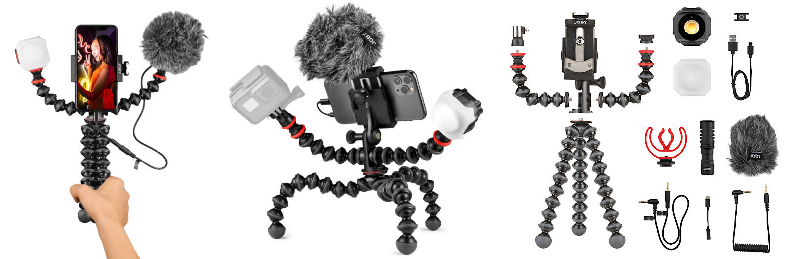 Das Kit, mit dem überall alles machbar ist, wurde zusammengestellt für die Influencer von heute und alle, die Beiträge auf dem Smartphone aufnehmen, für Youtuber, Instagrammer, Tiktoker usw. Das GorillaPod Vlogging-Kit für Smartphones macht aus Ihrem Telefon ein kleines Studio, mit dem Ihre Beiträge ganz gross rauskommen. Speziell abgestimmt auf die neueste Generation von Telefonen (iPhone 12, Pixel 4 usw.), enthält das Kit alles was Sie brauchen in einem kompletten Paket.