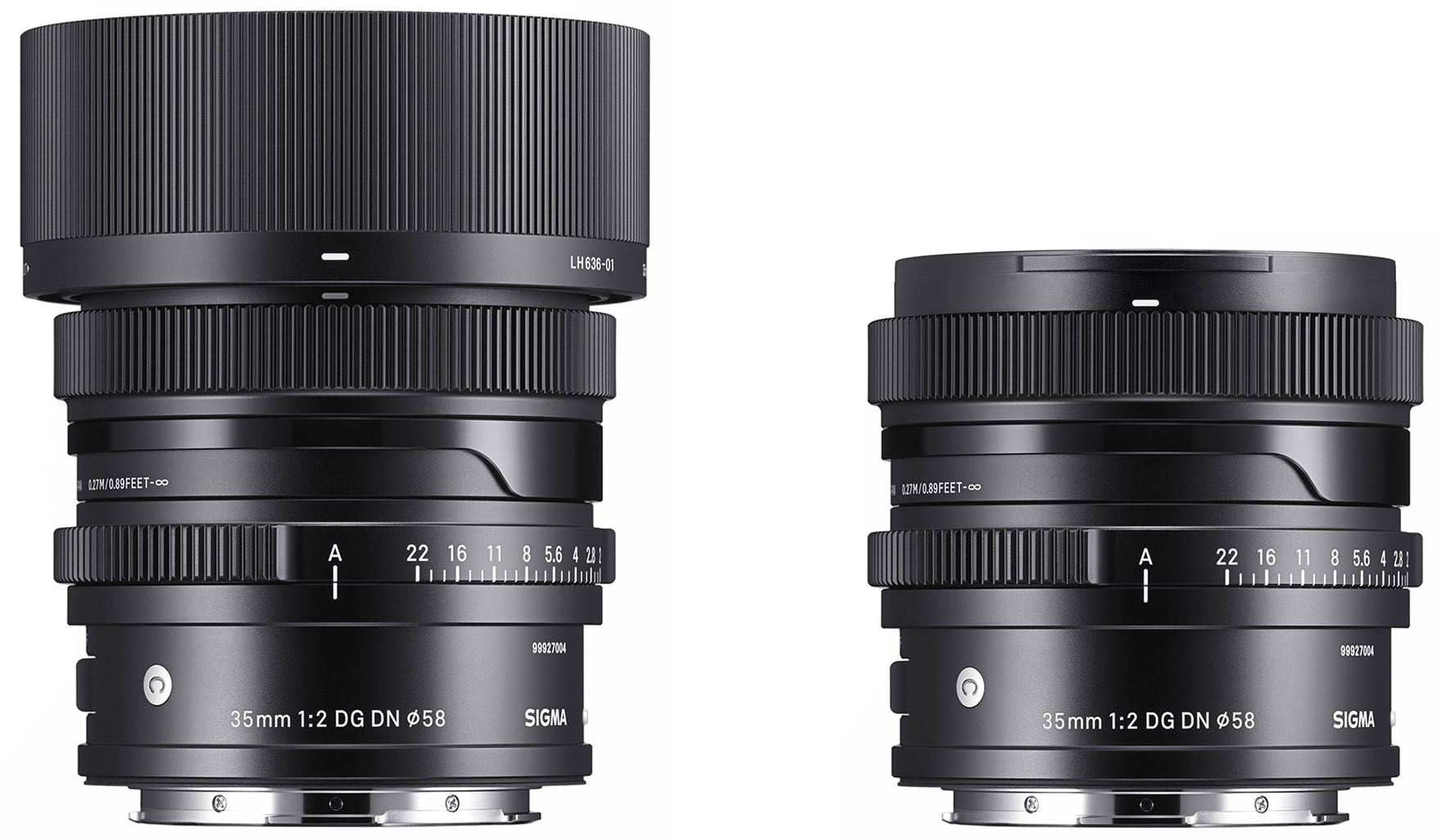 Das 2,0/35mm DG DN | Contemporary – hier mit und ohne die mitgelieferte Gegenlichtblende – bietet professionelle Leistung in einem kompakten, hochwertig verarbeiteten Metallgehäuse.