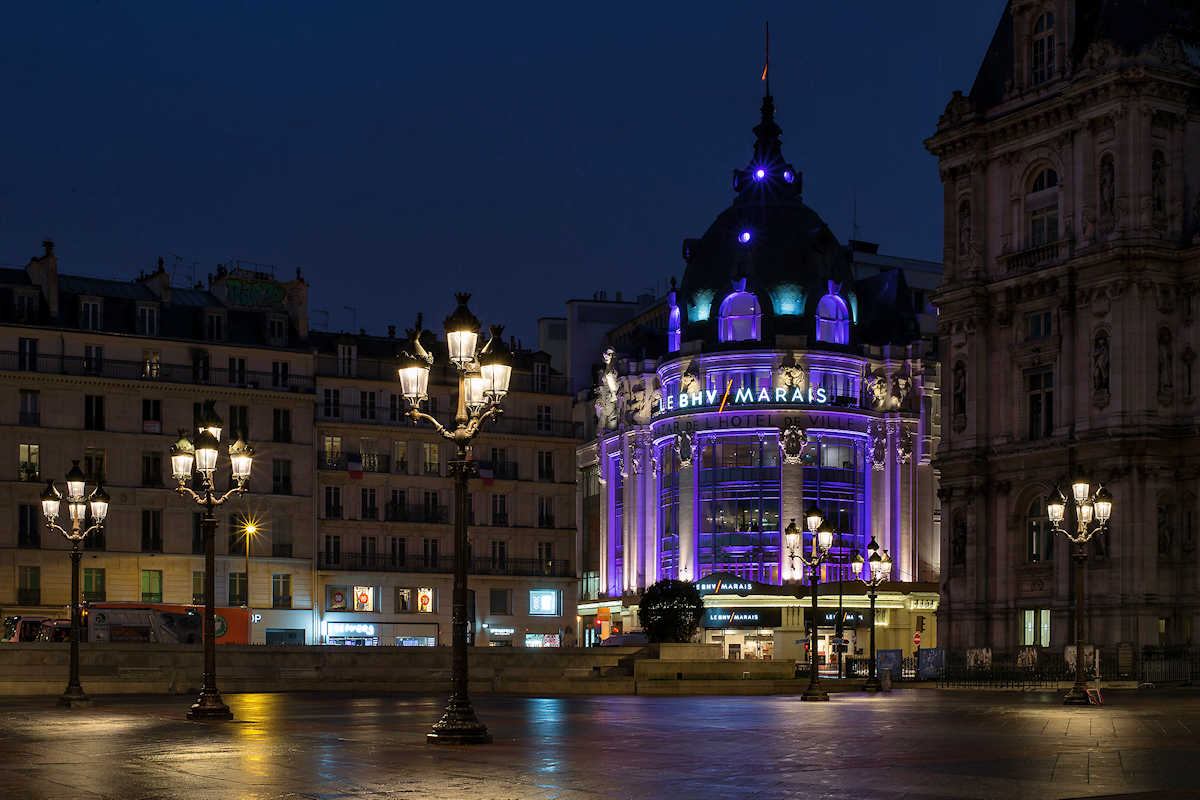Das gleiche Motiv, aufgenommen bei unterschiedlichen Lichtverhältnissen, kann völlig unterschiedlich wirken. Es lohnt sich deshalb, ein Motiv während verschiedenen Tageszeiten, Wetter- und Lichtverhältnissen aufzunehmen. Das obere Bild habe ich in Paris am Morgen bei bedecktem Himmel fotografiert. Es wirkt spannungslos und wenig interessant. Dasselbe Motiv, aufgenommen ca. 30 Minuten vor Sonnenaufgang während der Blauen Stunde und mit einem nassen Boden, wirkt völlig anders. Der dunkelblaue Himmel, die Strassenlaternen, die violett beleuchtete Hausfassade und die farbigen Spiegelungen am Boden erzeugen eine viel interessantere und wirkungsvollere Bildstimmung. © Martin Zurmühle