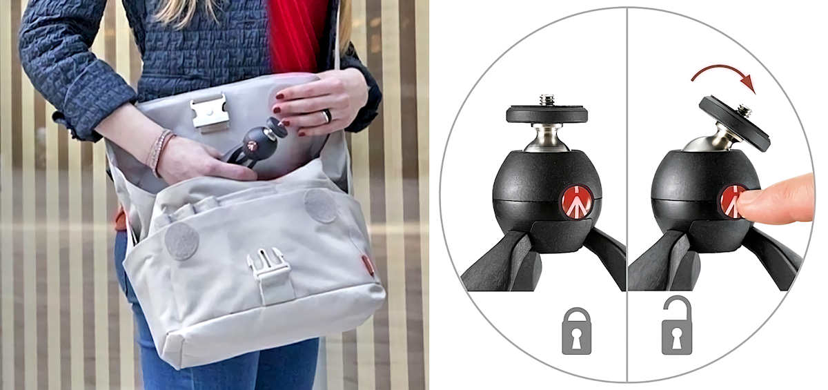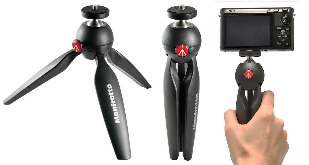 Die Form des Pixi Mini-Stativs ist zugleich ein komfortabler Handgriff, um Videos zu produzieren. Mit einem Zubehör kann auch ein Smartphone auf das Stativ montiert werden.