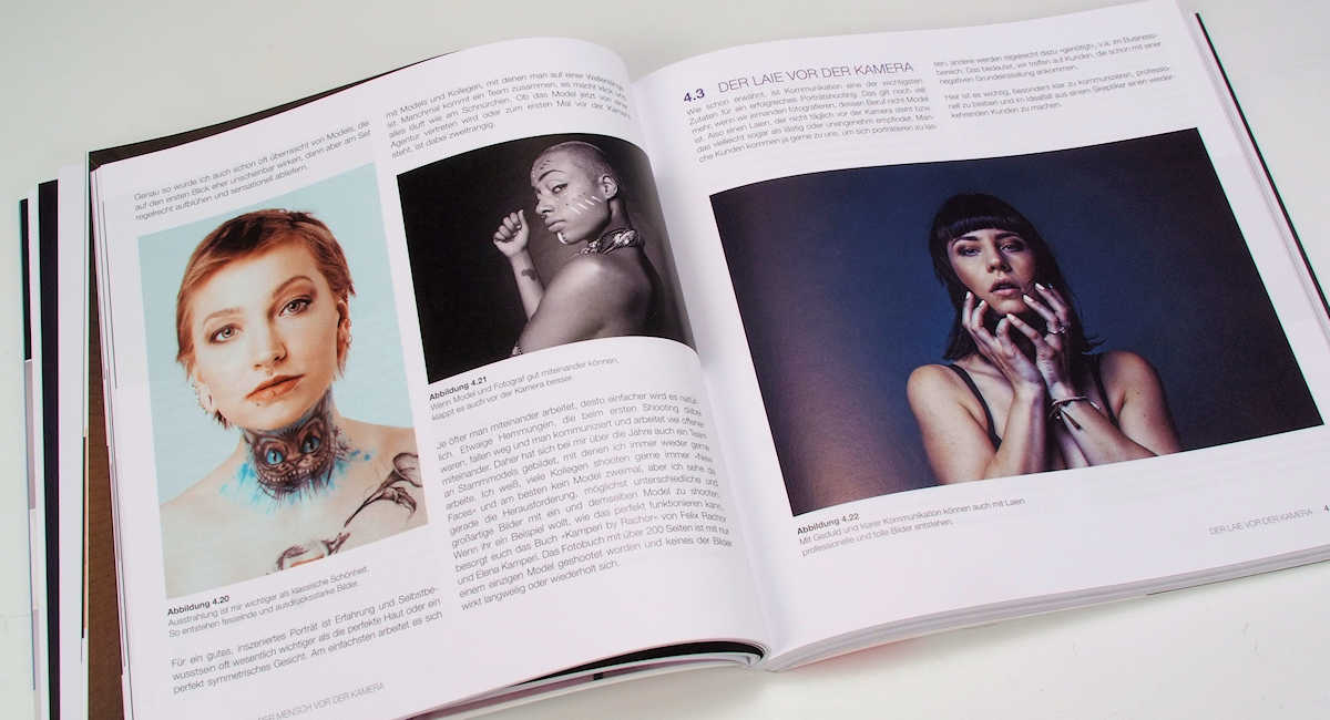 Das wichtigste jedoch ist die Psychologie zwischen Fotograf und Model, der zwischenmenschliche Kontakt und die Einfühlsamkeit des Fotografen in das (sehr oft anfänglich) verunsicherte Model. Dabei wollen beide das Gleiche, nämlich ein perfektes Porträt, nur müssen sich dazu die beiden Player zuerst einmal zusammenfinden. Ich finde diesen Teil des Buches den wichtigsten überhaupt, und Cliff Kapatais hat dieses schwierige Kapitel sehr gut und informativ gemeistert.
