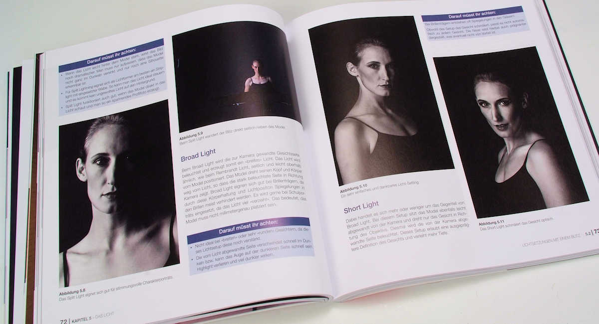 Im Praxisteil des Buches geht es dann um Licht, um Kameras, um Objektive und die Theorie dazu. Kompetent geschrieben werden hier die ganzen Randbedingungen für ein gutes Porträt abgehandelt, Dinge, die zum fotografischen Einmaleins gehören und die der Fotograf als Grundlange kennen muss, bevor er sich an die Königsdisziplin des Porträts heranwagt. Aber es ist alles umfassend beschrieben, auch so, dass auch Einsteiger damit einen sehr hohen Praxiswert bekommen.