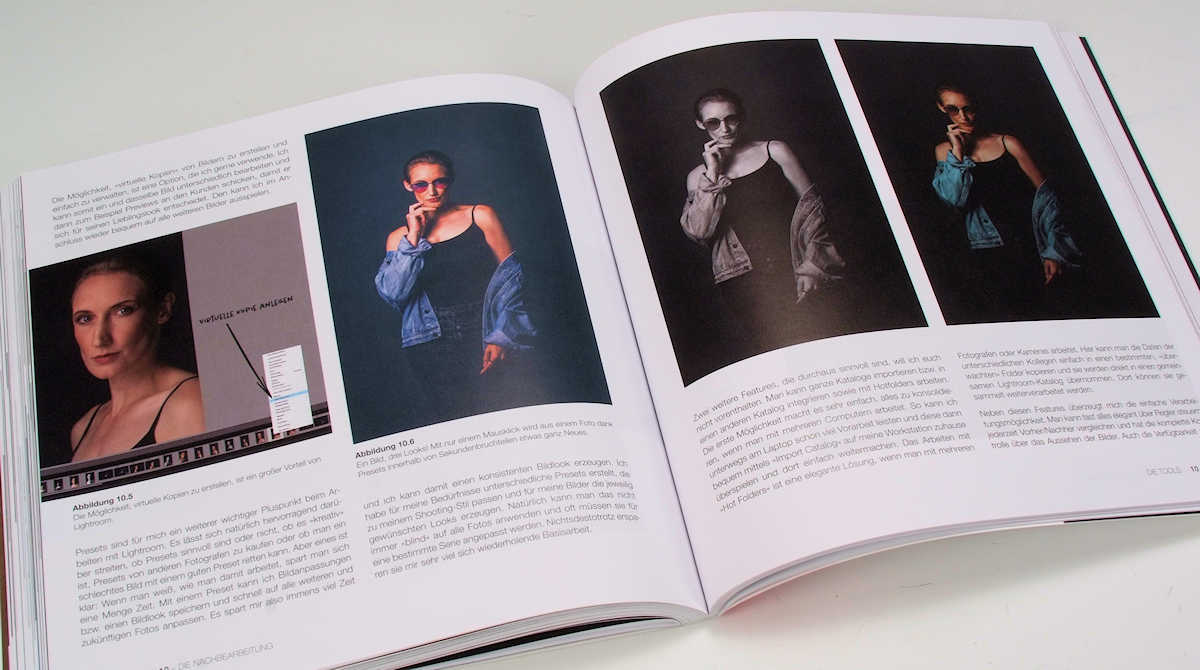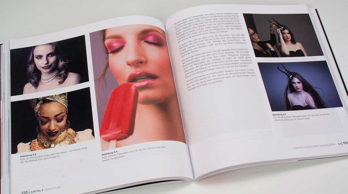 Dementsprechend ist das Buch auch logisch aufgebaut, mit einem kurzen historischen Abriss, weil man sich, wenn man in der Porträtfotografie Erfolg haben will, mit dem Schaffen der Alten Meister auseinandersetzen sollte, dann mit der Frage was ein gutes Porträt ausmacht, der Idee zum aussergewöhnlichen Porträt, den Voraussetzungen dazu, wie Make-up, Styling, aber auch Location, die ganze Technik, die der Fotograf im Schlaf beherrschen sollte, und schliesslich die Nachbearbeitung der Aufnahmen bis zum perfekten Endprodukt.