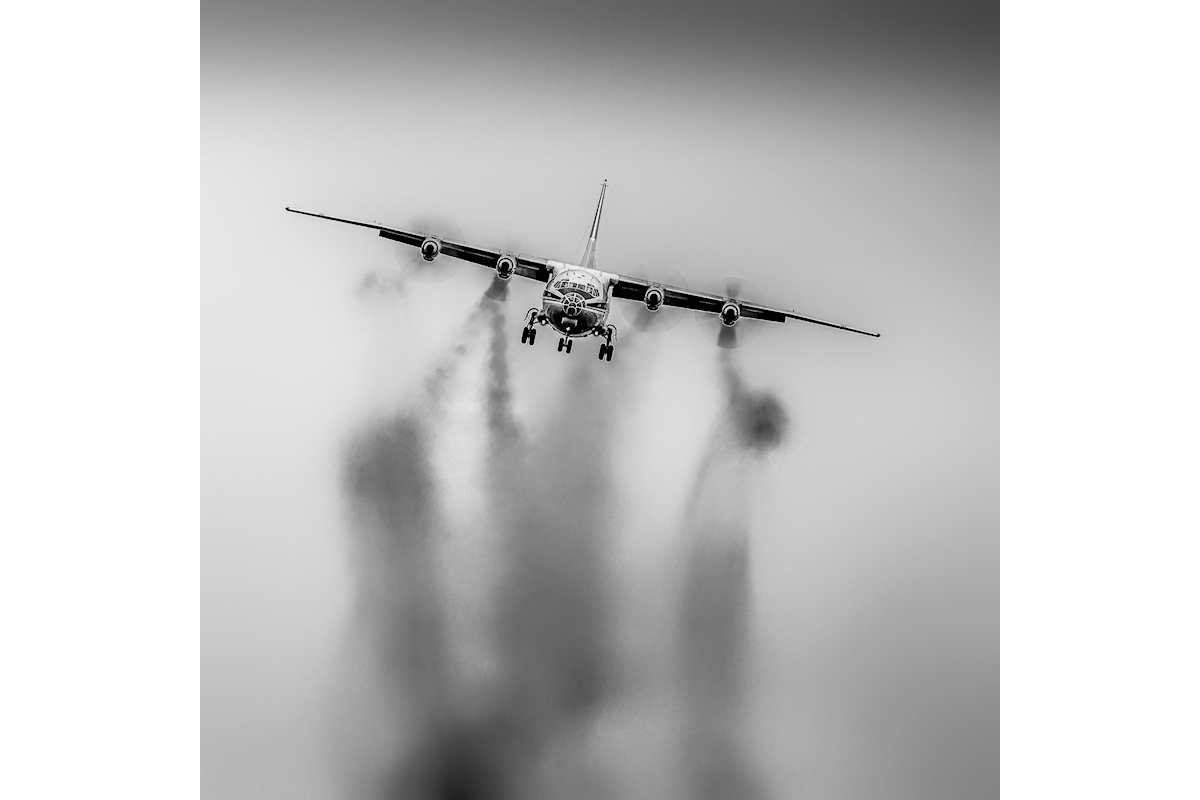 Rauchende Props, eine Antonov 12 im Anflug auf Zürich, toller Sound ist garantiert!