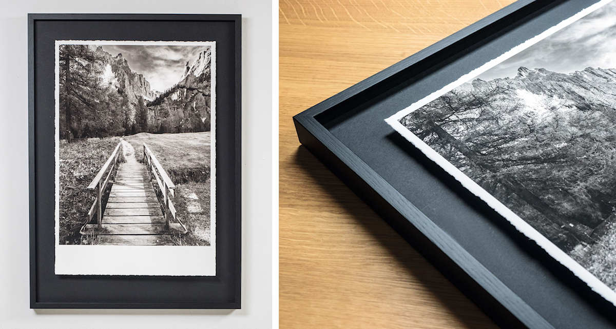 Hochwertige Schwarzweiss-Bilder auf handgeschöpftem Büttenpapier kommen perfekt bei einer frei schwebenden Rahmung zur Geltung. (Bild: Fineartprinter – Stella)