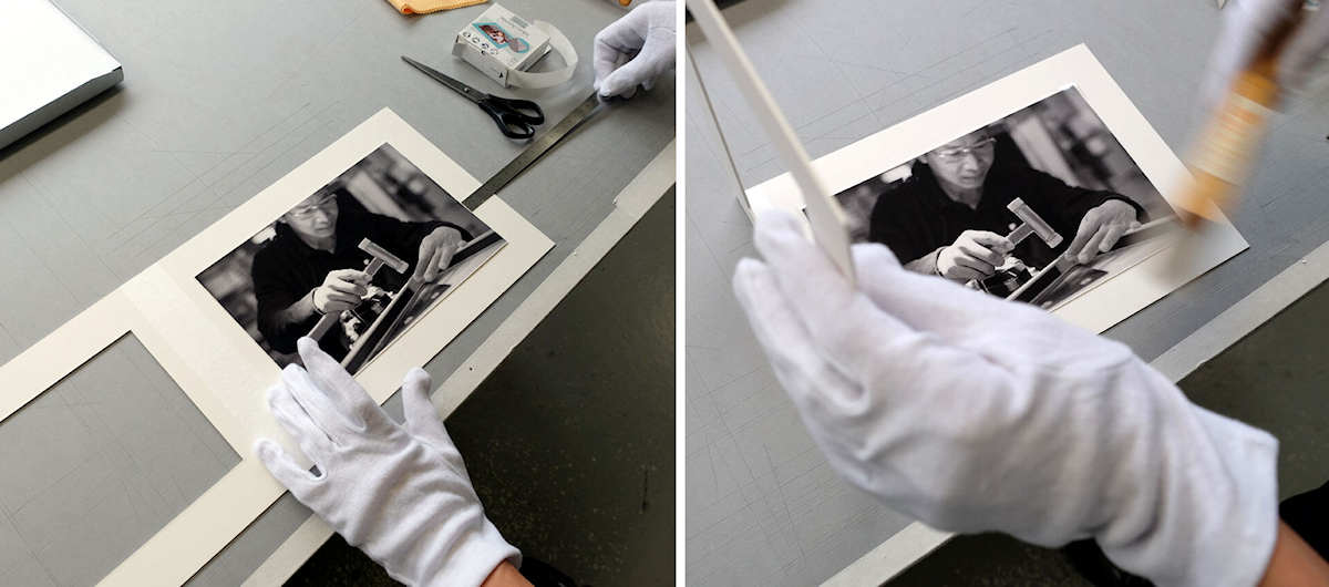 Besonders Schwarzweiss-Aufnahmen aus den 20er- und 30er-Jahren liegen meist nur in den Formaten 4,5 x 6 cm oder 6,5 x 9 cm vor und verfügen über einen wunderschönen Büttenrand. Diese einmaligen Exponate sowie Grafiken mit Signatur benötigen eine besondere Rahmung. Damit sie perfekt zur Geltung kommen, empfehlen die Rahmenspezialisten von «Halbe» eine freigestellte Rahmung mit Klapp-Passepartout. Das heisst, das Motiv wird auf dem Rückwandkarton des Passepartouts beispielsweise mit transparenten Fotoecken exakt in den Passepartout-Ausschnitt positioniert. Anschliessend wird das Passepartout zugeklappt. Die Bilder werden so mit einem zusätzlichen Weissrand im Passepartout gerahmt, was einen schönen optischen Effekt erzeugt. Die Signatur des Künstlers bzw. der Büttenrand werden nicht überdeckt, sondern mit in Szene gesetzt.