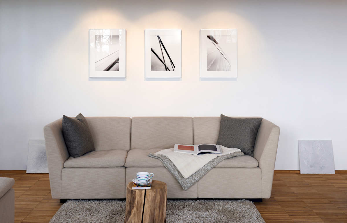 Um den Bildkontrast bei Schwarzweiss-Bildern gezielt zu betonen, sollte ein dunkler Rahmen verwendet werden. Schwarze Alu- bzw. dunkle Eichenholz-Leisten verstärken die perspektivische Tiefenwirkung.