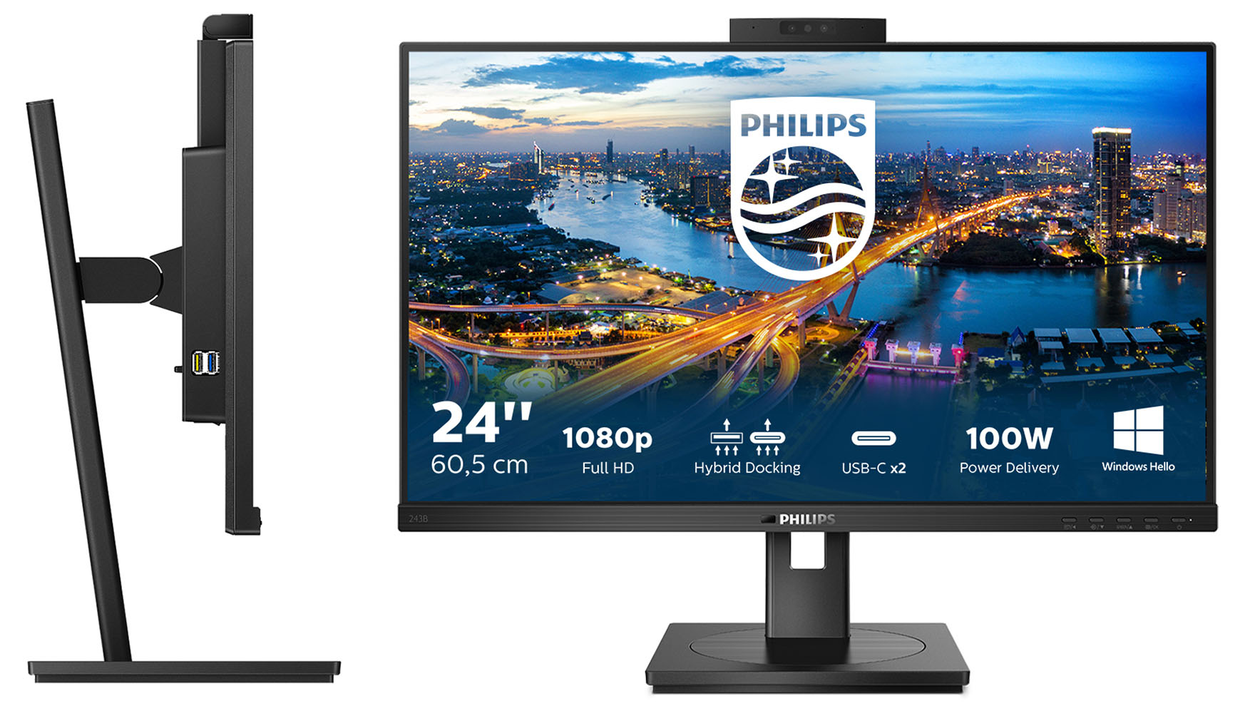 Komfortabel, grün, stark: Philips Monitor 243B1JH mit Hybrid-USB-Anschluss und sicherer Webcam