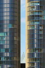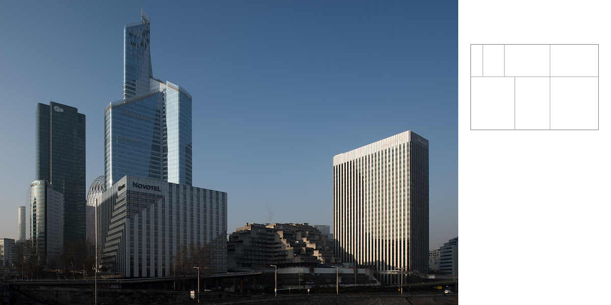 Statische Komposition. Bilder mit vorwiegend vertikalen und horizontalen Linien wirken für uns statisch. Sie strahlen Stabilität und Ruhe aus. Es ist dabei wichtig, dass die Linien präzise ausgerichtet sind. Schon kleine Abweichungen können stören. Bei dieser Aufnahme aus Paris (La Défense) wurden die Hochhäuser mit einem Tilt-Shift-Objektiv genau vertikal ausgerichtet und das Bild wirkt so ruhig und statisch. (24 mm | f/11 | 1/125 | ISO 64 © Martin Zurmühle)