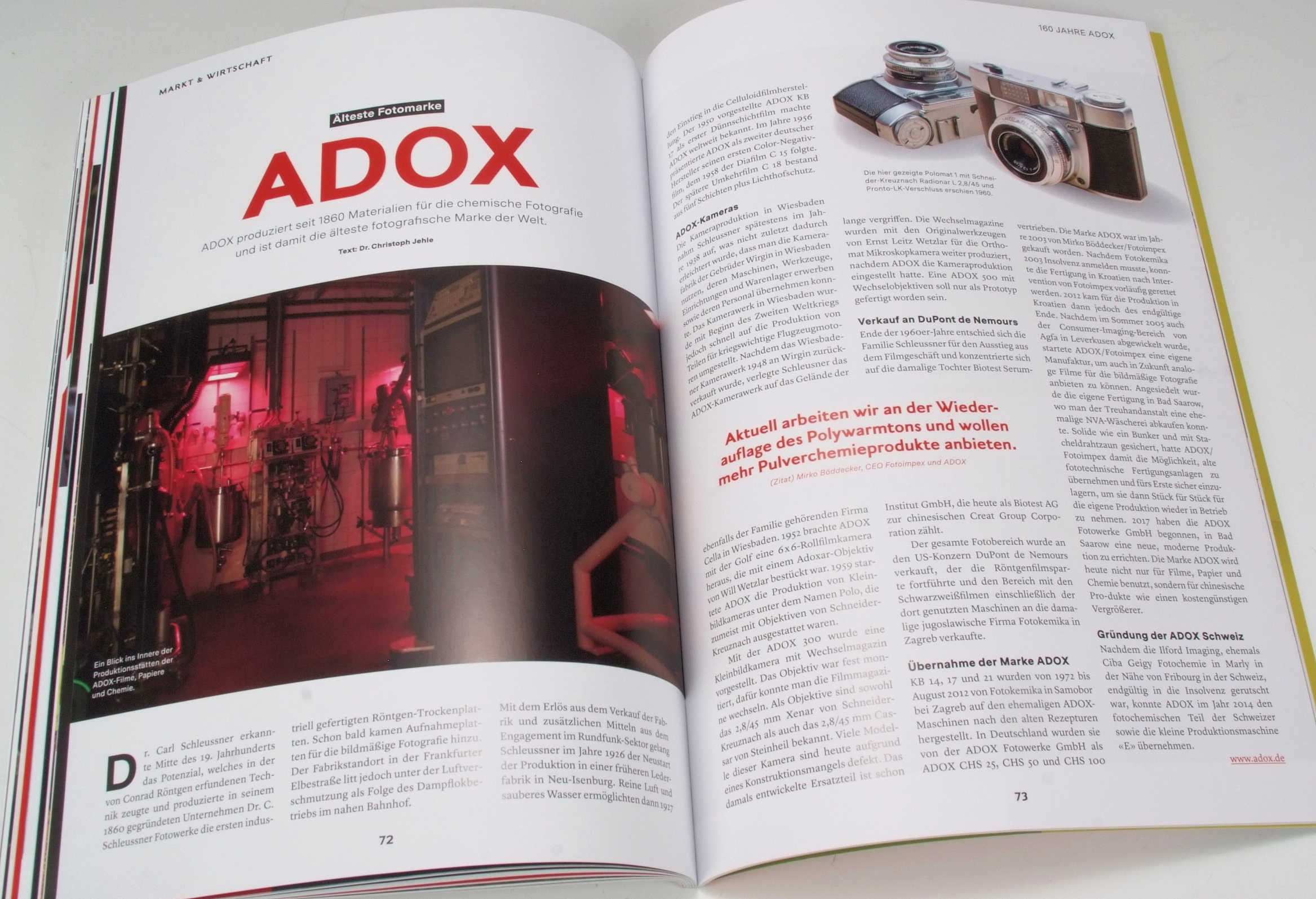 Christoph Jehle stellt in seinem Artikel die älteste noch bestehende Fotomarke vor – Adox. 1860 von Carl Schleussner gegründet hat die Film- und Kamerafabrik eine bewegte Vergangenheit hinter sich, welche der Autor mit vielen sorgfältig recherchierten und wenig bekannten Tatsachen durchwandert.