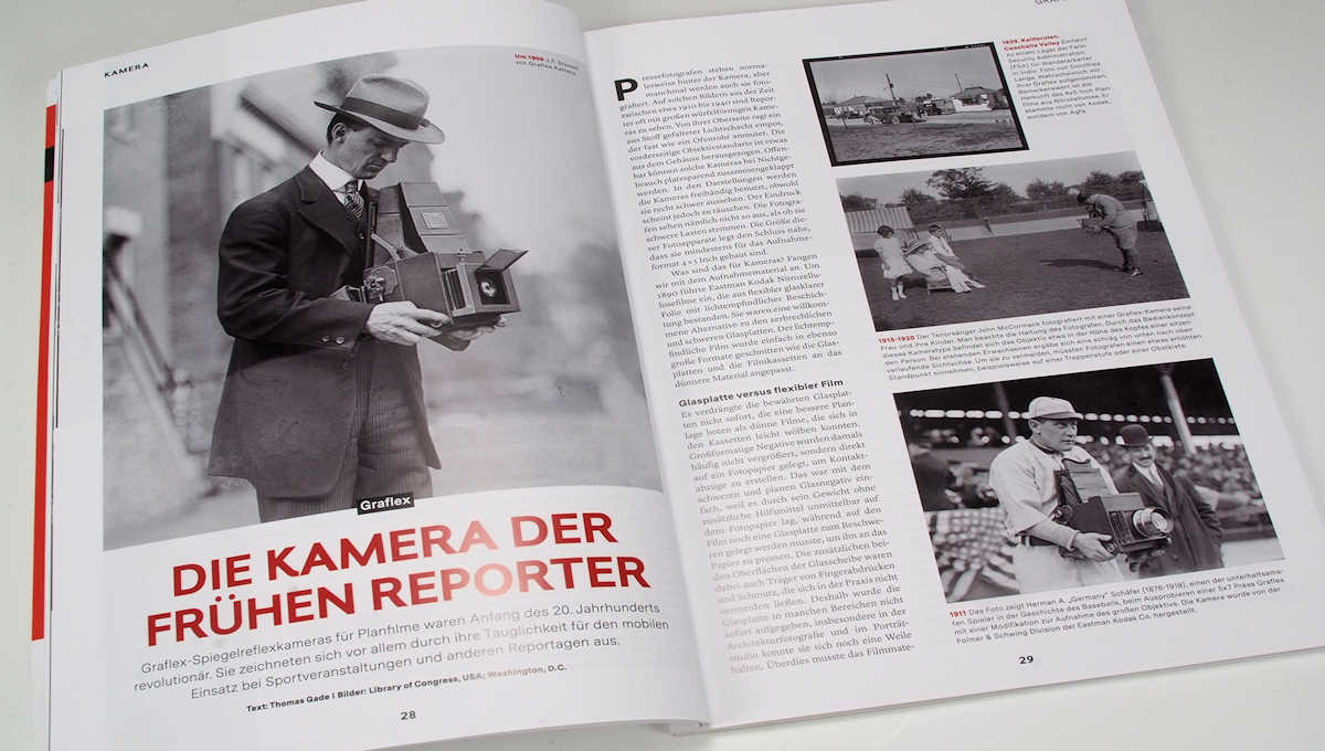 Das pure Gegenteil waren die Kameras von Graflex, welche in einem weiteren interessanten Beitrag beleuchtet werden. Der amerikanische Hersteller war vor rund 100 Jahren auf Spiegelreflexkameras im Grossformat, vorwiegend für das Plattenformat 5×7″ (13×18 cm) und später 4×5″ (10×12,5 cm), spezialisiert, die von vielen Sport- und Aktualitätsfotografen wegen der Qualität grosser Negative bevorzugt wurden.