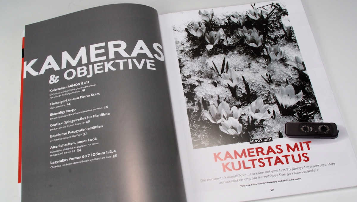 Eine Stärke von PhotoKlassik ist die Vorstellung legendärer Kameras – diesmal die Minox 8×11 des Konstrukteurs Walter Zapp (1905-2003), der seine letzten Lebensjahre in der Ostschweiz verbrachte. Als handgrosse Miniaturkamera konzipiert, wurde sie immer wieder für spektakuläre Spionageaufgaben eingesetzt und war Star in unzähligen Abenteuerfilmen.