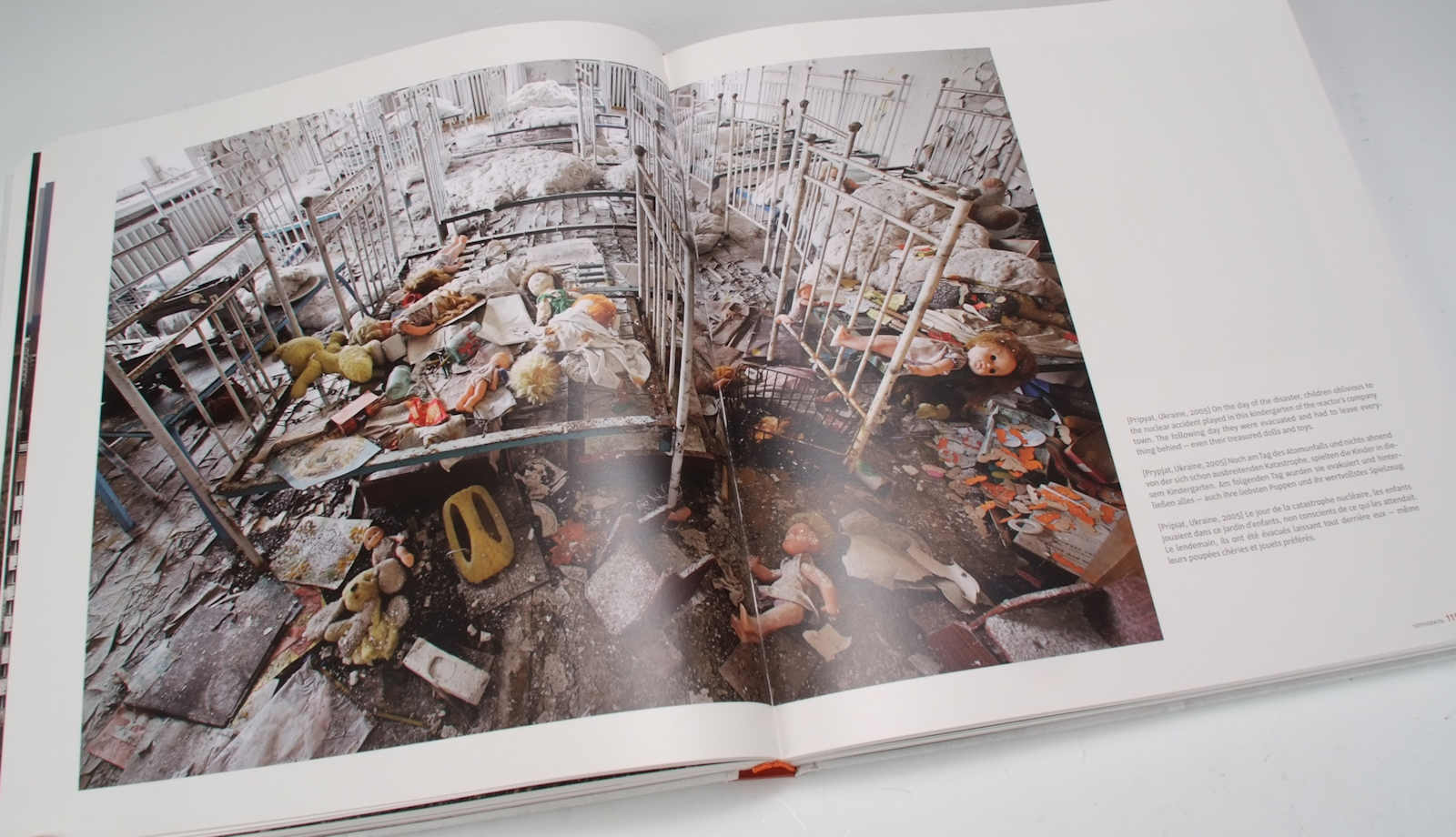 Der Bildband von Gerd Ludwig über Tschernobyl ist keine Neuerscheinung, doch drängt uns die Jährung des Ereignisses dazu, dieses einmalige Buchwerk in Erinnerung zu rufen. Letzte Woche, am 26. April, war es 35 Jahre her, dass sich die Nuklearkatastrophe von Tschernobyl ereignete. Am 26. April 1986 um 01:23 Uhr kam es auf Grund diverser Unachtsamkeiten zur folgenschweren Explosion des Reaktors #4 und zu einem Grossbrand, der zehn Tage lang nicht einzudämmen war. Gelöscht wurde mit Wasser, was die Auswirkungen noch vergrösserte. Der radioaktive Niederschlag kontaminierte mehr als 100’000 Quadratkilometer, vor allem die nur drei Kilometer vom Kernkraftwerk entfernte Stadt Pryjat, wo der Lebensunterhalt der rund 50’000 Einwohner weitgehendst von diesem abhing. Pryjat ist, wie andere Siedlungen in der Zone 1, zur Geisterstadt geworden, welche sich die Natur langsam zurückholt. Die radioaktive Strahlung jedoch wird noch für einen unbestimmten Zeitraum für Menschen und Tiere lebensgefährlich bleiben.