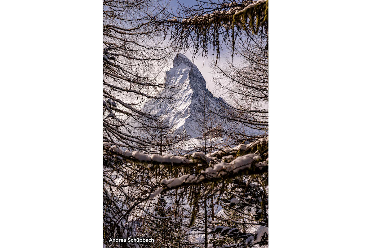 Wenn es ein Motiv gibt, das die Schweiz wie kein anderes repräsentiert, dann ist es das imposante Matterhorn. Unzählige Male fotografiert und doch immer wieder beeindruckend. Andrea Schüpbach ist mit ihrem Foto eine ungewöhnliche Perspektive gelungen: Eingerahmt zwischen den Ästen wirkt es ganz besonders majestätisch. «Das natürliche Framing verleiht dem Foto eine besondere Tiefe – ein sehr starkes Bild!», lobt Maier. Sein Jurykollege Michael Joos ergänzt: «Erfrischend anders. Das Bild gewinnt bei jedem Hinsehen mehr».