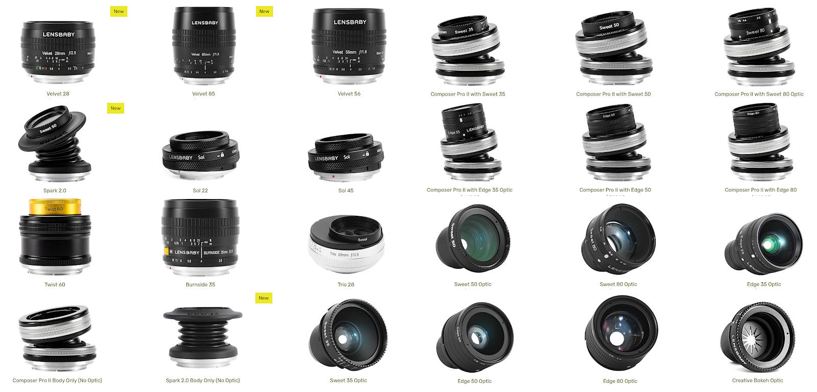 Die amerikanische Firma Lensbaby Inc. in Portland (Oregon) bietet mehrere Objektive an, die es dem Fotografen erlauben, mit der Schärfeebene zu experimentieren. (https://lensbaby.com)