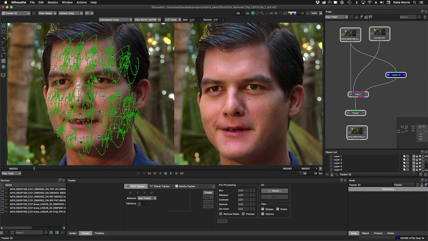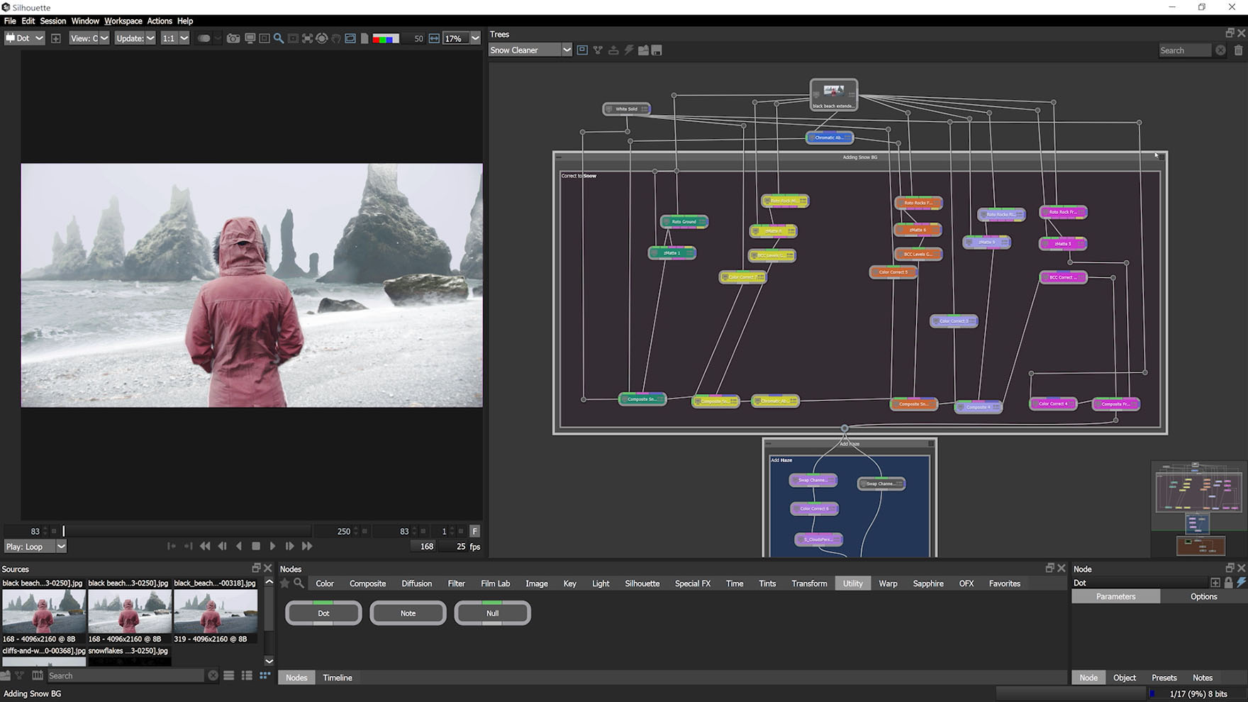 Nun hat Boris FX mit der Version 2021 ein grosses Update von Silhouette mit neuen, nutzerfreundlichen Rotoskopie- und Malwerkzeugen und einer komplett Node-basierten Bedienung veröffentlicht. Nodes sind Knoten bzw. Verknüpungen mehrere Bearbeitungsschritte, die auf die Bilder einer Filmsequenz und somit Bild für Bild angewendet werden.