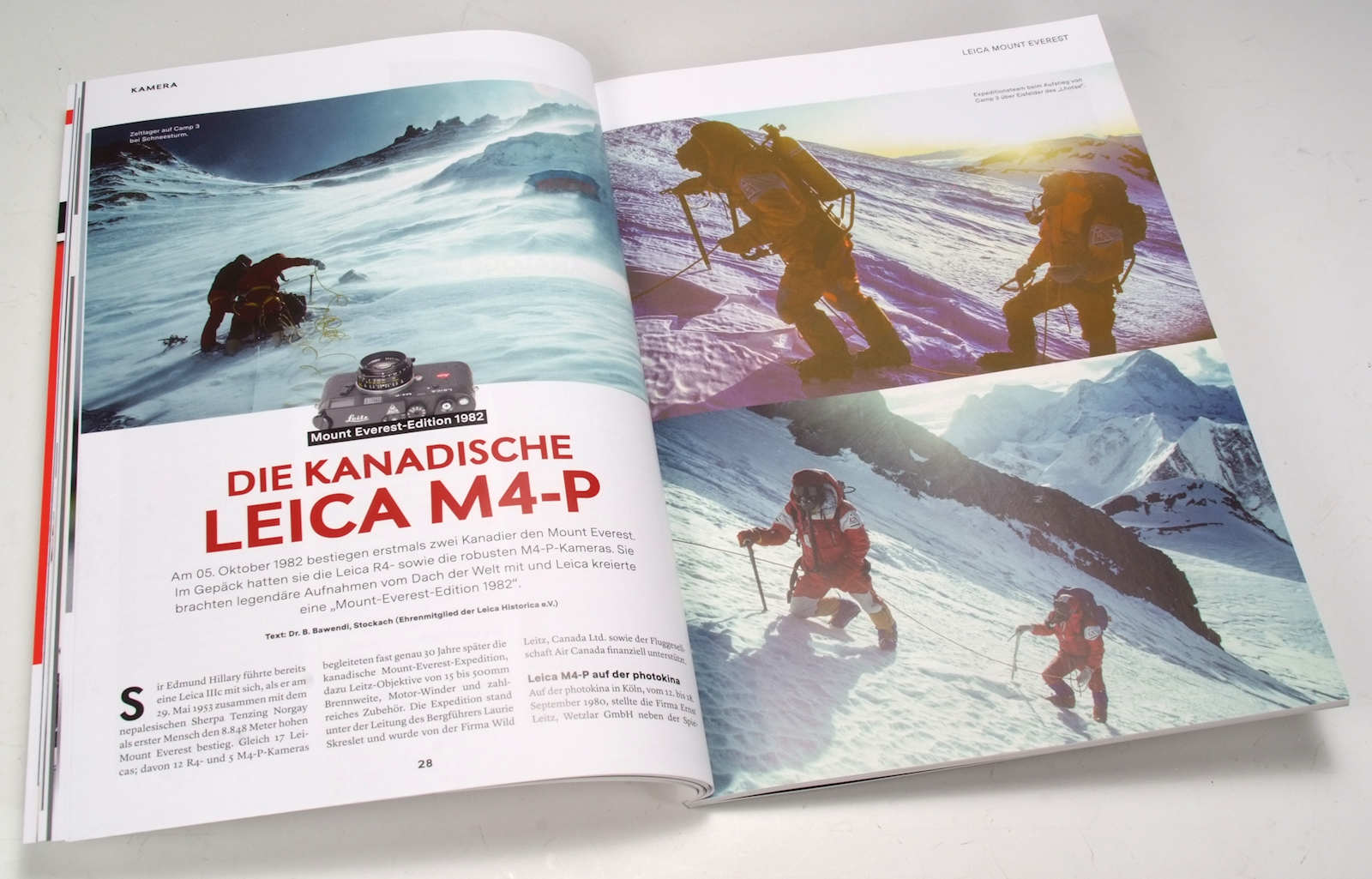 Leica-Kameras waren bei fast allen Rekorden am Mont Everest mit dabei, schon Edmund Hillary 1953 hatte eine IIIc, aber auch 1982 nahmen die beiden Kandier Laurie Skreslet und Pat Morrow neben einer Leica R4 eine damals neu vorgestellte M4-P mit auf den höchsten Berg der Welt. Danach hat Leica eine Sonderserie «Everest 82» von 200 Kameras herausgebracht, die heute Raritäten sind.