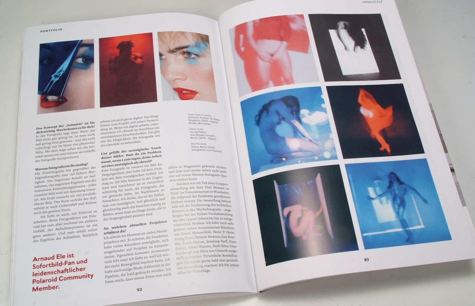 Arnaud Ele absolvierte die Filmschule in Genf und ist als Fotograf und Filmemacher sehr erfolgreich. Hier sind einige seiner analogen Bilder zum Thema «Leidenschaft und Intimität» zu sehen. Er zeigt auch, wie er verschiedene Polaroid-Materialien kreativ einsetzt. Ob einem das Titelbild des Heftes von ihm gefällt oder nicht, ist Geschmacksache …