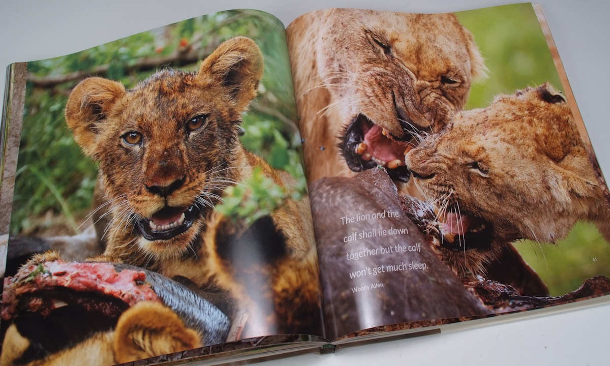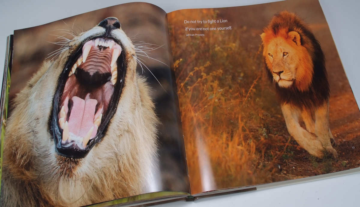 Das Buch zeigt über 80 grossformatige, meist doppelseitige Bilder von Grosskatzen, meist Löwen Leoparden und Geparden. Es ist überwältigende Bilder, die über Jahre in Tausenden von Stunden, aber auch viel Glück entstanden sind. Sie zeigen vor allem Löwen, Leoparden und Geparde in ihrer natürlichen Umgebung bei ihren instinktiven Verhalten beim Durchstreifen der Savanne, auf der Jagd des täglichen Überlebens, während ihrer Ruhezeit und beim Beschützen ihrer Jungen. Es sind Bilder, die uns nicht nur das Verhalten der Tiere näherbringt, sondern die auch ihre Eigenarten und ihre natürliche Schönheit zum Ausdruck bringen.