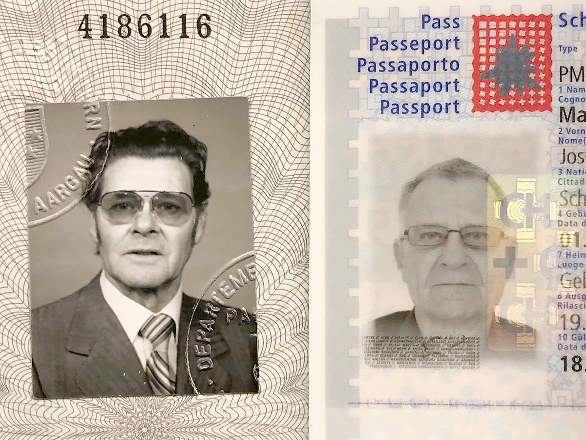 Vor mir liegen zwei Passbilder. Eines von meinem Vater aus dem Jahr 1964 und ein neues – dasjenige von mir. Das Passbild im alten Pass meines Vaters zeigt ein hervorragendes Brustbild, perfekt beleuchtet, schön geprintet und es enthält alle notwendigen Identifikationsmerkmale. Daneben mein neuer Pass, für den ich von einer fest eingerichteten Hellmachungsanlage mit einer schlecht auflösenden Kamera auf mehr oder weniger zufälligen Knopfdruck abgelichtet wurde. Die Unterschiede sind frappant: Hier ein wirklich schönes, scharfes, hochaufgelöstes Porträt bei meinem Vater und da ein schreckliches, schlechtaufgelöstes und miserabel beleuchtetes Verbrecherbild!