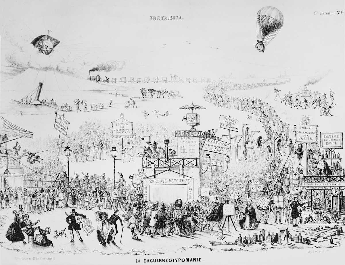 Die Karikatur von Maurisset «La Daguerréotypomanie» übertreibt ulkig die Verbreitung der Daguerréotypie