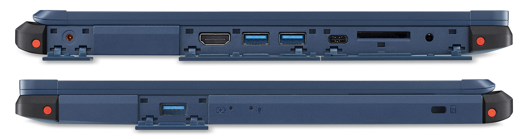 Zusätzlich ist es mit zahlreichen weiteren Merkmalen ausgestattet, damit es auch unter widrigen Bedingungen eingesetzt werden kann. Darunter wasserdichte IO-Anschlüsse, Lautsprecher und Tasten, einen wasserabweisenden Lüfter, den Acer Aquafan, der eintretendes Wasser über ein integriertes Ablaufsystem wieder aus dem Gehäuse herausführt, sowie Stossdämpfer an jeder Ecke des Gehäuses. Das Notebook steckt nicht nur in einem widerstandsfähigen Gehäuse, sindern bietet trotz Robustheit ein ansprechendes, hochwertige Design. Es ist wahlweise in der Farbe Blau und in der Farbombination Schwarz-Grün (schwarzes Gehäuse, dunkelgrüner Deckel) verfügbar.