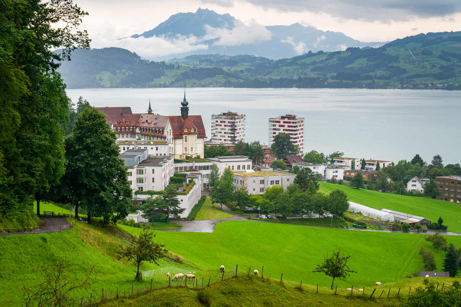 Kräftig-saftige Farben bei trübem Wetter über dem Zugersee (16-85 bei 16mm f8)