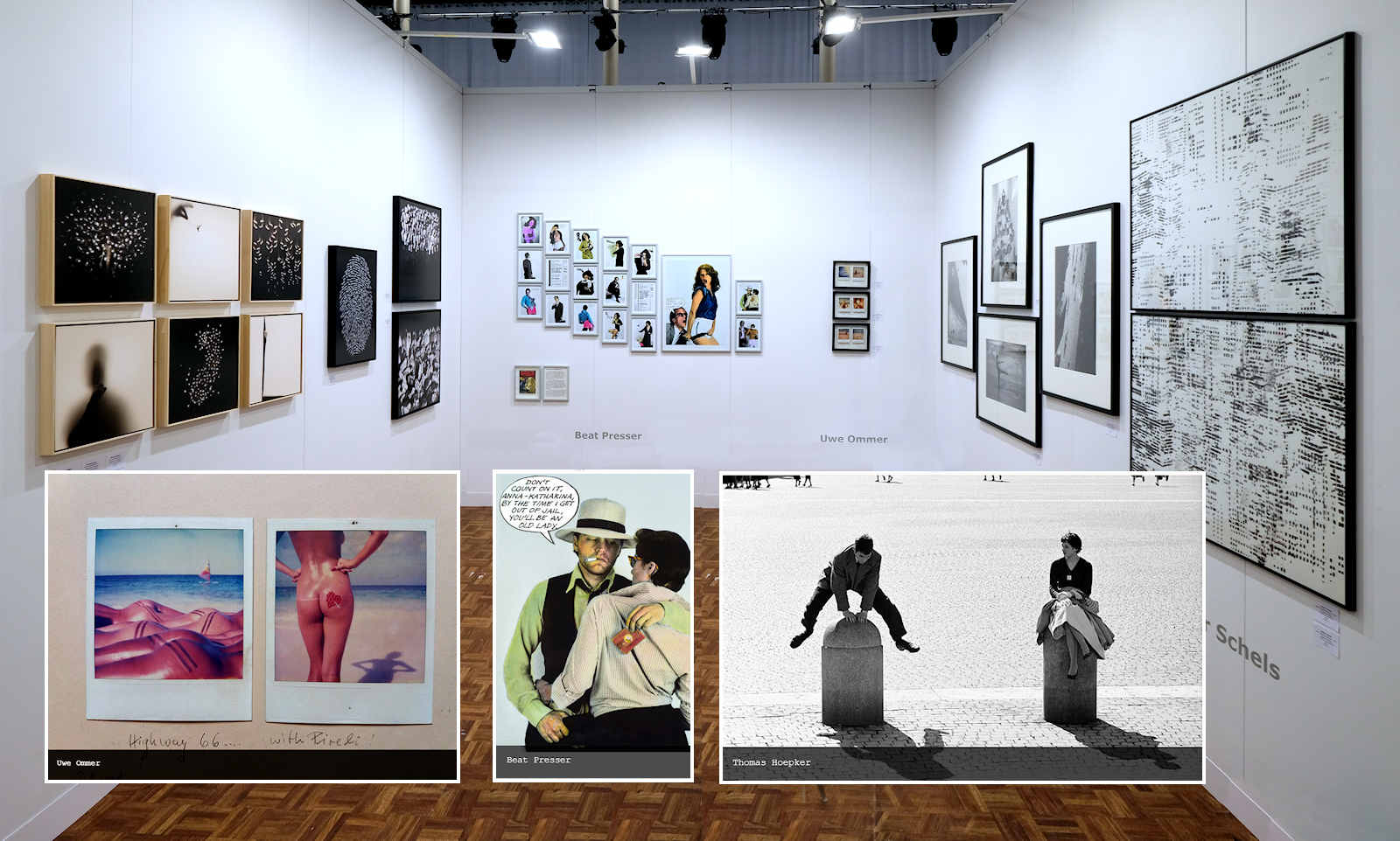 Bilder von Patrik Fuchs, Kostas Maros, Sandro Livio Straube und Zak van Biljon sind am Stand der Galerie 94 aus Baden zu sehen