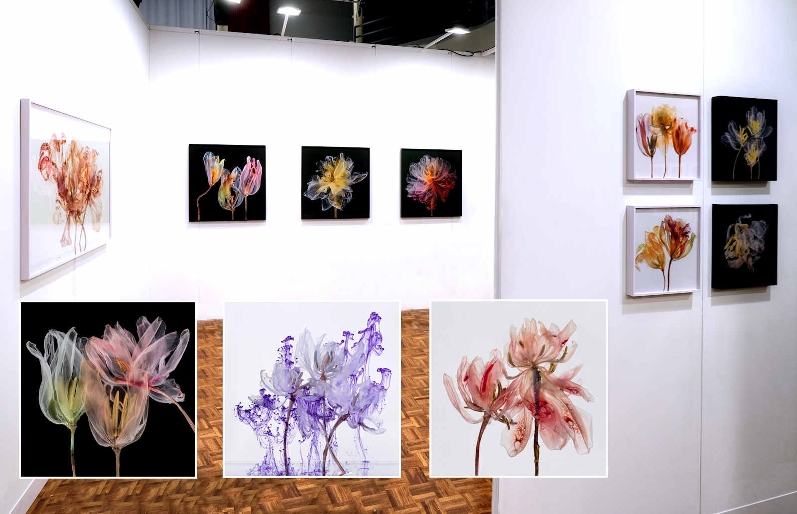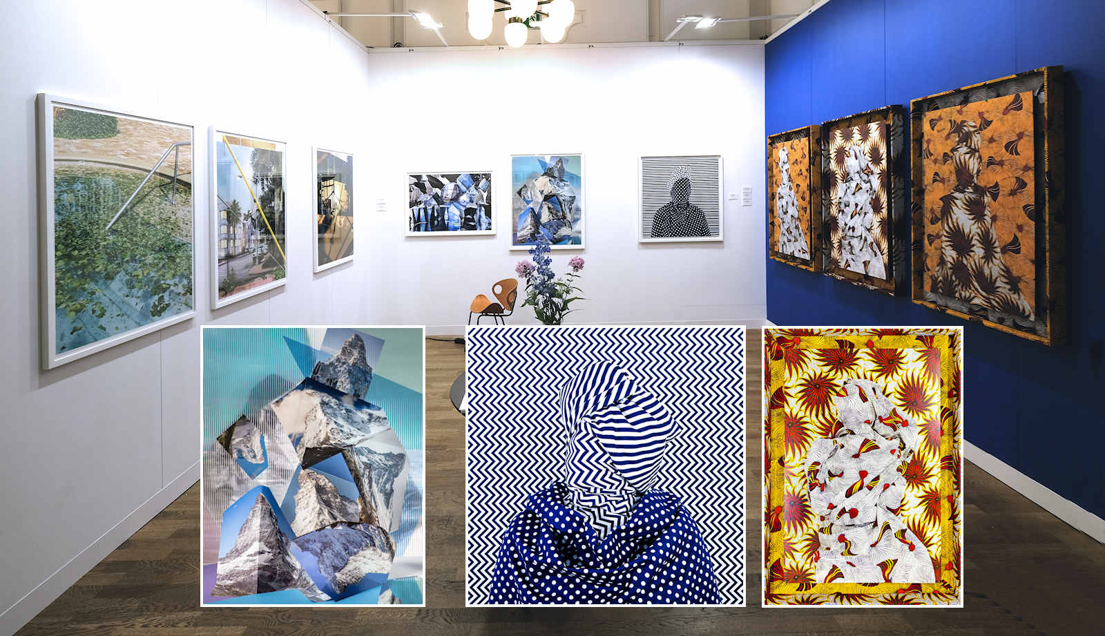 Motivmässige Vielfalt auch am Stand der Galerie Peter Sillem aus Frankfurt am Main mit Fotokunst von Anastasia Samoylova und Alia Ali. Das unten besprochene Matterhorn-Bild von Anastasia Samoylova ist in der unteren Reihe links zu sehen