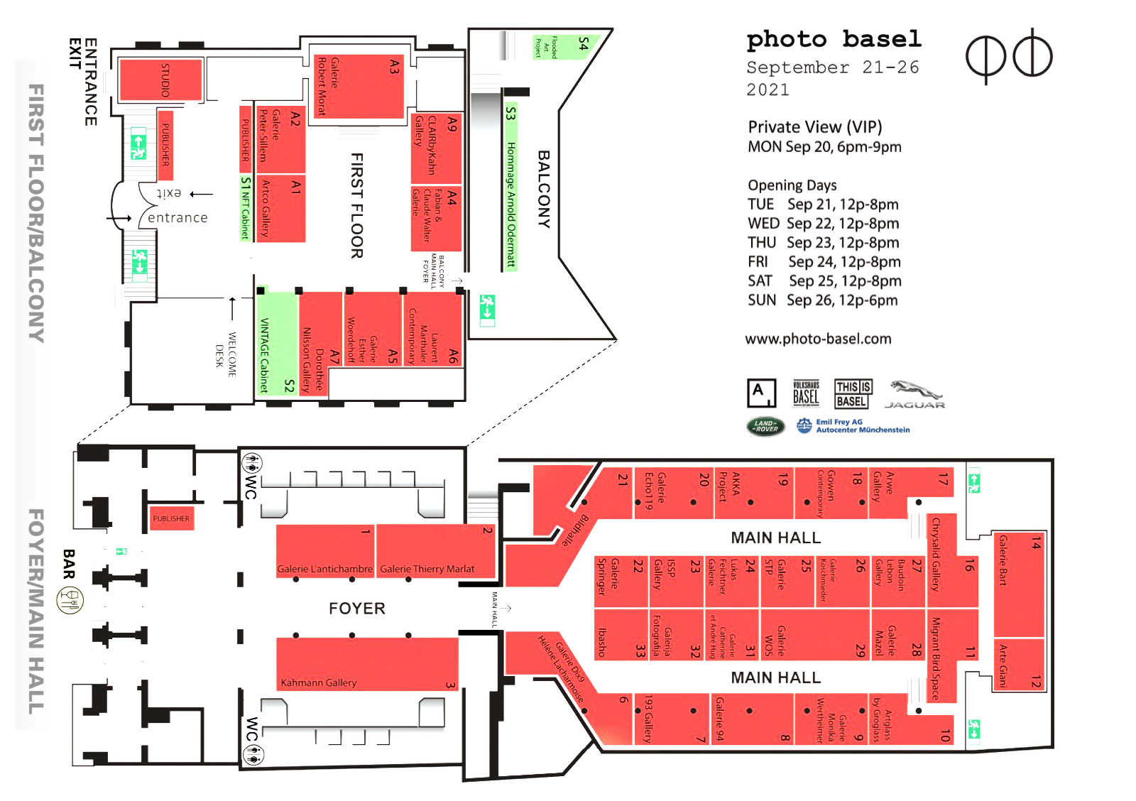 193 Galerie*, Paris FR / AKKA*, Dubai, Venedig IT/UAE / Artco*, Berlin DE/ZAF / Arte Giani, Aachen, Berlin DE / Arwe, Gouda NL / Baudoin Lebon, Paris FR / Bildhalle, Zürich CH / Catherine & André Hug, Paris FR / Chrysalid, Rotterdam NL / Clair by Kahn, Zürich FR/CH / Dix9* Hélène Lacharmoise, Paris FR / Dorothée Nilsson, Berlin DE / Echo 119 Paris FR / Esther Woerdehoff, Paris, Genf FR/CH / Fabian & Claude Walter, Zürich CH / Galerie 94, Baden CH / Galerie Bart*, Amsterdam NL / Galerie Koschmieder, Berlin DE / Galerie Mazel, Brüssel BEL / Galerie Monika Wertheimer, Basel CH / Galerija Fotografija, Ljubjana SLO / Gowen Contemporary*, Genf CH / Ibasho, Antwerpen BEL / ISSP*, Riga LAT / Kahmann Gallery, Amsterdam NL / l’antichambre, Champéery FR / Laurent Marthaler, Montreux, Zürich CH / Lukas Feichtner*, Wien A / Migrant Bird Space*, Berlin DE / Peter Sillem, Frankfurt DE / Robert Morat*, Berlin DE / Springer, Berlin DE / STP, Greifswald DE / Thierry Marlat, Paris FR / WOS, Zürich CH /