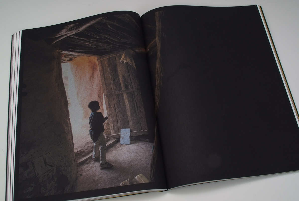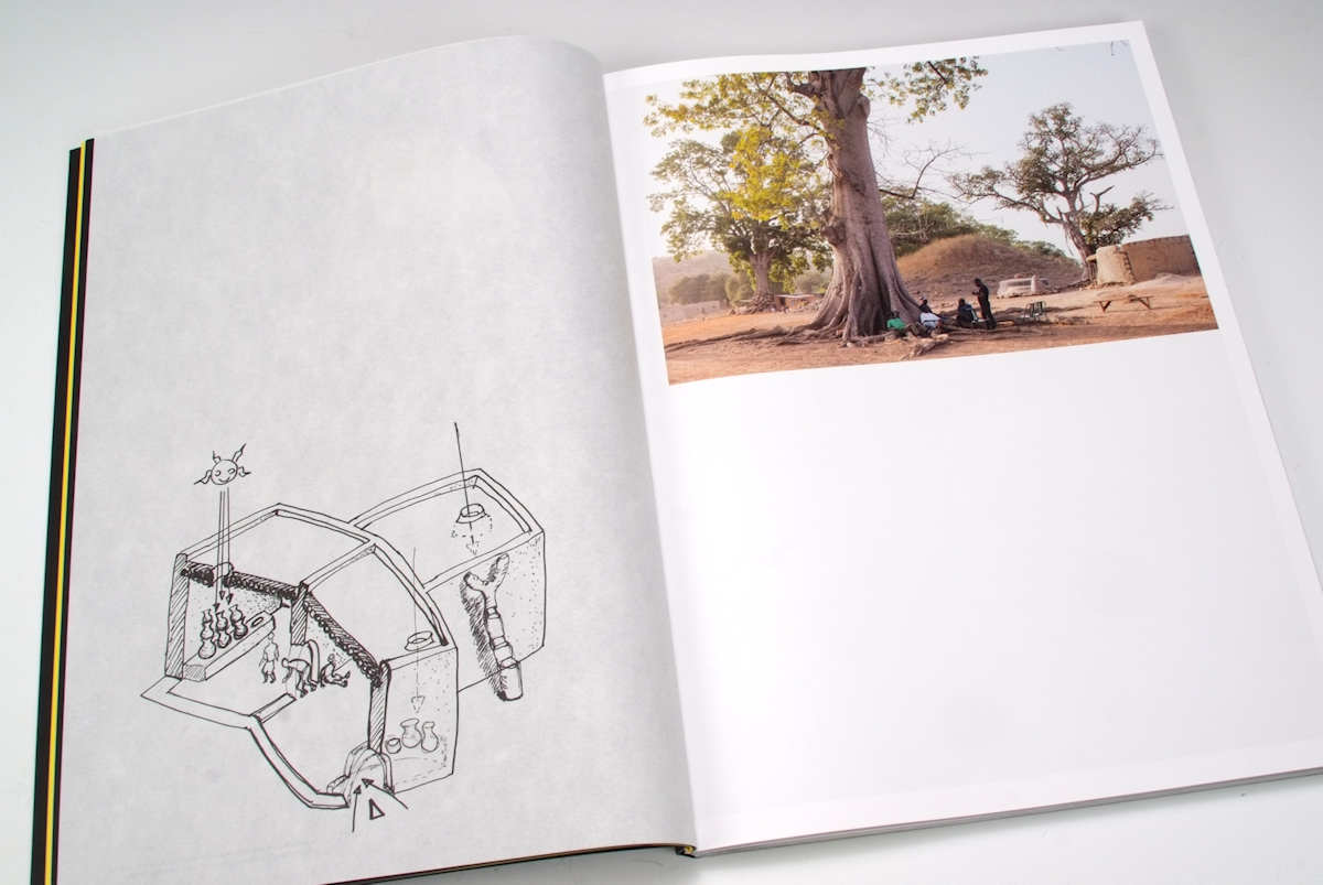 Um die eigenartige Lichtstimmung im Innern der Häuser zu zeigen, sind die Bilder abwechslungsweise auf weissen und schwarzen Papierbogen gedruckt. Auf den weissen Blättern des Buches kommen die Aussenaufnahmen perfekt zur Geltung, während der Druck auf dem schwarzen Papier einen Eindruck der fahlen und düsteren Stimmung in Innern der Häuser vermittelt. Francis Kéré beschreibt dazu die architektonischen Besonderheiten dieser Häuser genauso, wie die besonderen handbemalten Häuser von Tiébélé, die Moscheen von Bobo-Dioulasso mit ihren eigenartigen Türmen oder die Lebensweise der Menschen in Pouni und Gando.