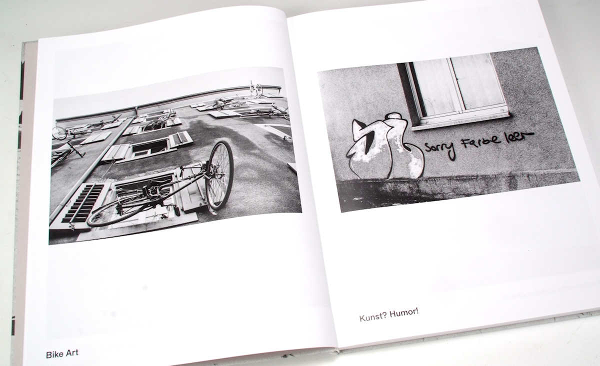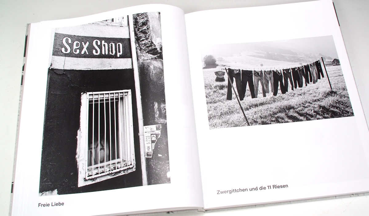 Mäddel Fuchs tut dies, und zwar konsequent seit über vierzig Jahren. Er ist begannt als fotografischer Chronist des Appenzells (siehe Buchbesprechnung «Appenzeller Welten – 415,4 km² im Universum») und für unzählige Bilder zu diesem Thema in eigenen Büchern oder solchen, die er mit seinen Bildern illustrierte. Und wenn man sich – wie Mäddel Fuchs – auf solche Zufallssituationen achtet, auf lustige dahingesprayte Kommentare, auf Objekte, die kontroverser nicht hätten platziert werden können, oder auf Schilderkomik aller Arten, dann stellt man verblüfft fest, dass es davon nur so wimmelt. Meist ziehen wir schmunzelt vorüber und sagen uns erst hinterher: «ich hätt’ es eigentlich fotografieren sollen …»