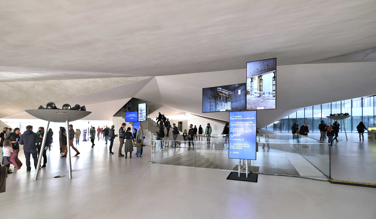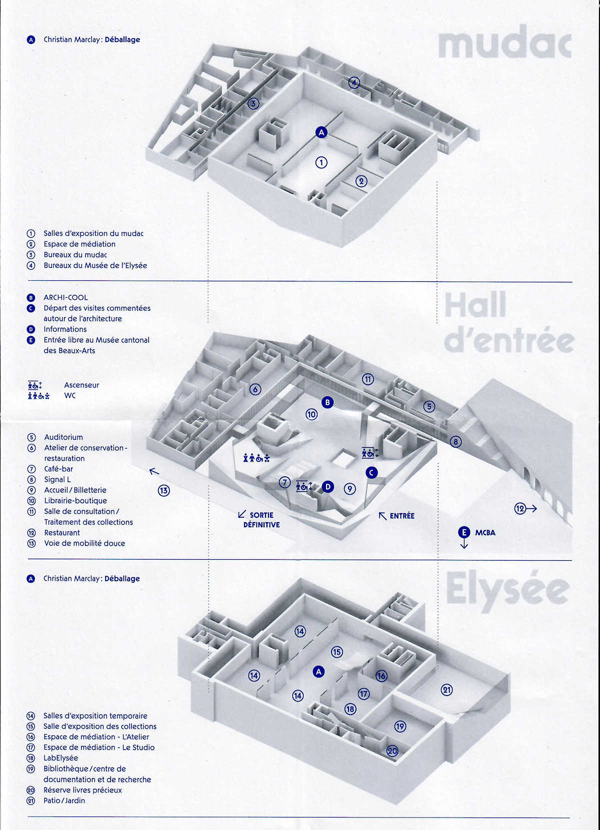 Die Dimensionen sind gigantisch: Das quadratische Gebäude hat eine Seitenlänge von je 42 Metern und eine gesamte Raumfläche von 14’400 Quadratmetern; davon entfallen 1580 m² auf das Mudac im ersten Stock und 1520 m² auf Photo Elysee im Untergeschoss. Das Erdgeschoss ist dem Empfang, Garderobe, Auskunft, dem Museumsshop und der Caféteria beider Museen vorbehalten. Zusätzlich zum quadratischen Ausstellungskomplex gibt es noch diverse Räume der Infrastruktur für Lager, Restauration, Administration sowie eine grosse, öffentlich zugängliche Bibliothek. Viele der rund 20’000 Bücher sind bereits oder werden derzeit digitalisiert und können später auch online konsultiert werden.