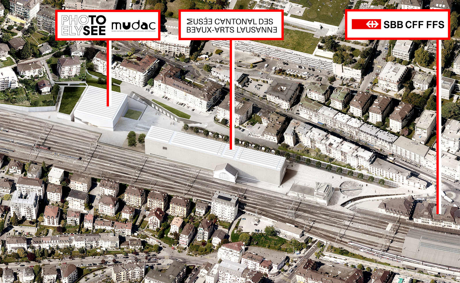 Das «Photo Elysée» (bisher Musée de l’Elysée) ist nur eines von drei Kunstmuseen, welches auf dem ehemaligen Areal der Lokomotivhallen beim Bahnhof Lausanne untergebracht ist. Hier ist mit zwei gigantischen Neubauten die «Plateform 10» entstanden, ein neuen Kunstquartier, in dem drei Kunstmuseen zu sehen sind: Neben dem Photo Elysée findet hier auch das «mudac» (Musée de Design et d’Arts Appliqués Contemporains – Museum für Gestaltung und angewandte, zeitgenössische Kunst) im gleichen Gebäude seinen Platz, während das «Musée Cantonale des Beaux-Arts Lausanne» (Kantonales Kunstmuseum Lausanne) in einem separaten Neubau näher in Richtung Bahnhof zu finden ist.