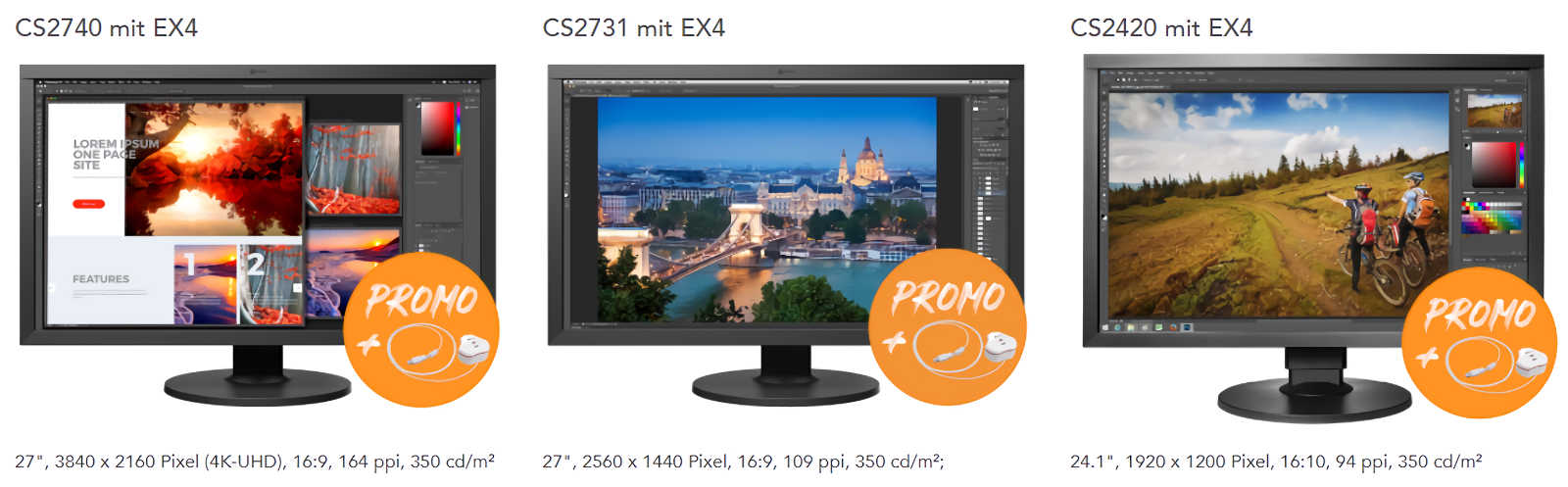 Die Aktion mit dem Gratis-Frabsensor gilt für die ColorEdge-Modelle CS2740 Swiss Edition, CS2731 Swiss Edition, CS2420 Swiss Edition