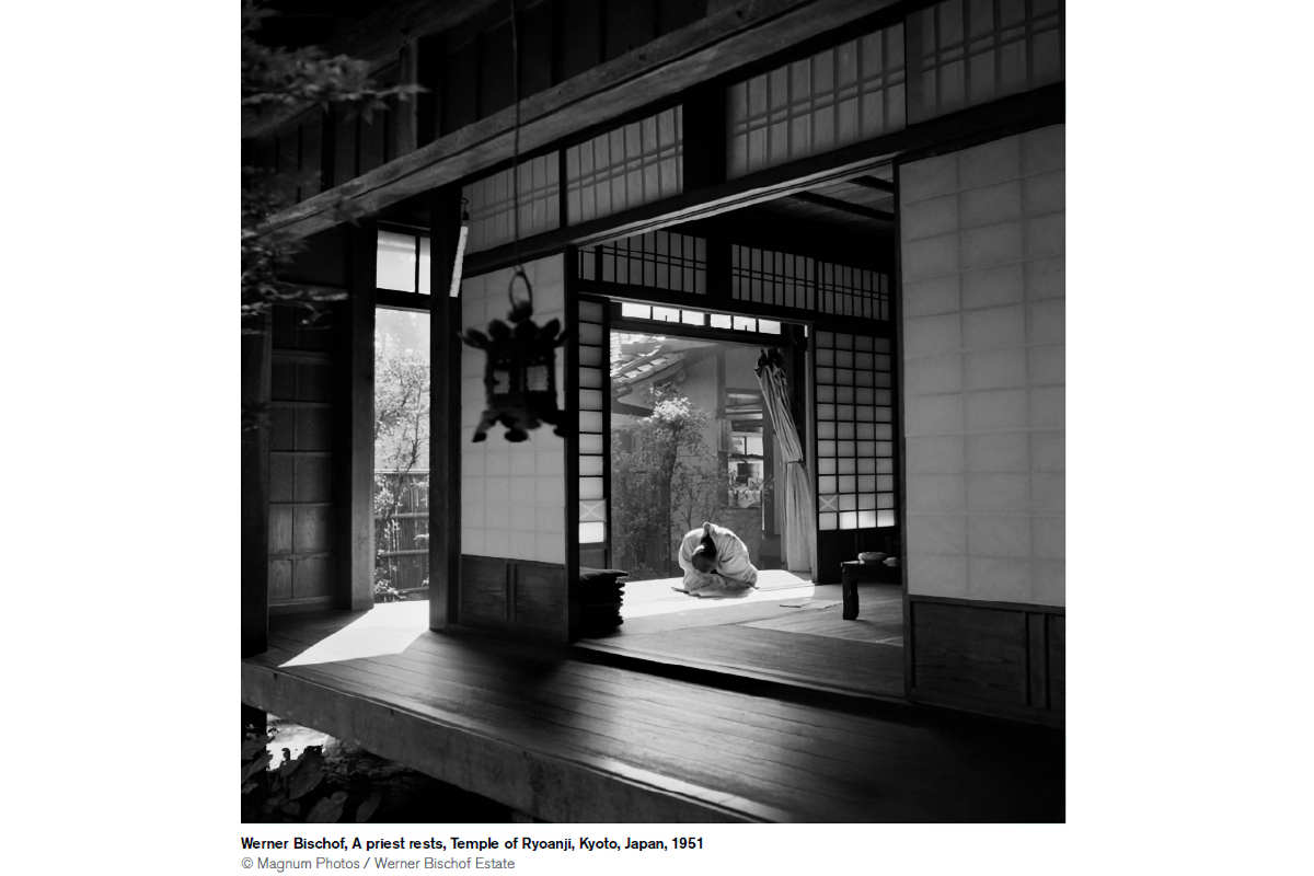 Die Japan-Bilder gehören nicht zu den Berühmtesten von Werner Bischof – mit Ausnahme des Bildes mit den drei Mönchen im Garten des Meiji-Schreins, das Werner Bischof selbst als das Charakteristischste seiner Japanreise von 1951 bezeichnete. Damals war Japan ein im Westen noch weitgehend unbekanntes und vor allem touristisch wenig erschlossenes Land, und es ist seinem Freund und Fotografen Ihē Kimura zu verdanken, dass Bischof mit den ungewöhnlichen Lebensgewohnheiten und der unverständlichen Sprache zurechtfand und in Kreise der japanischen Kultur eingeweiht wurde, die damals den Fremden weitgehend unzugänglich waren. So sind Bilder entstanden, welche die westliche Welt noch nie gesehen hatte, und die 1955 an der Smithsonian Institution in Washington D.C., und danach auf einer Wanderausstellung auf grosse Beachtung stiessen.