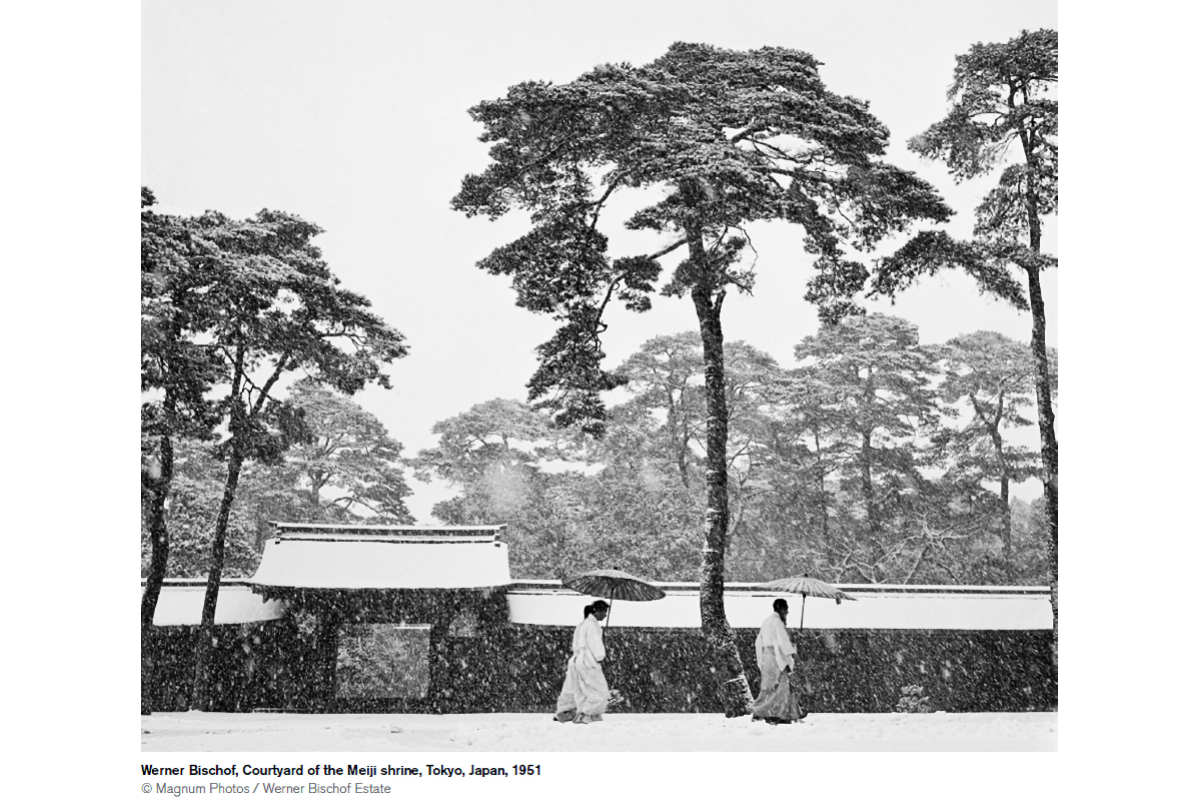 Das Bild der drei Mönche vor dem verschneiten Meiji-Schrein von Tokio ist das bekannteste Japanbild von Werner Bischof