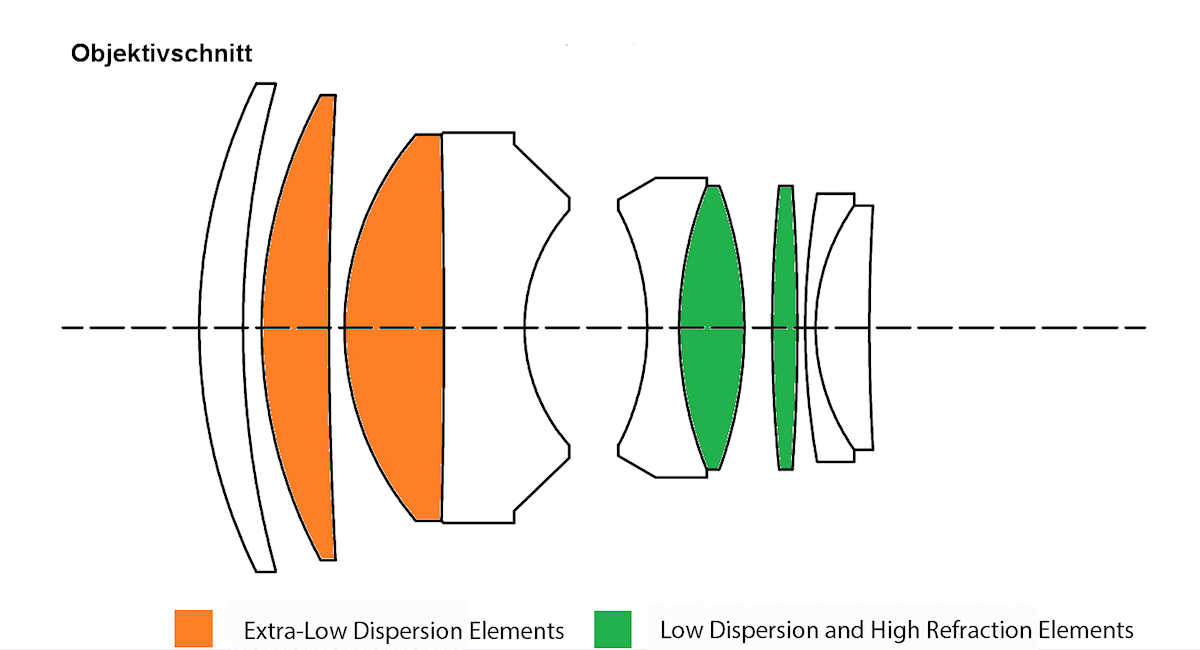 | Optische Konstruktion | 9 Elemente in 6 Gruppen |